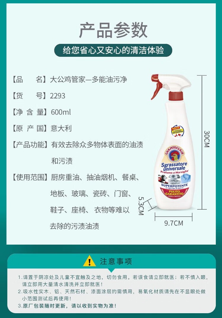 【爆品】意大利进口大公鸡去油污清洁剂600mL (2瓶/组)
