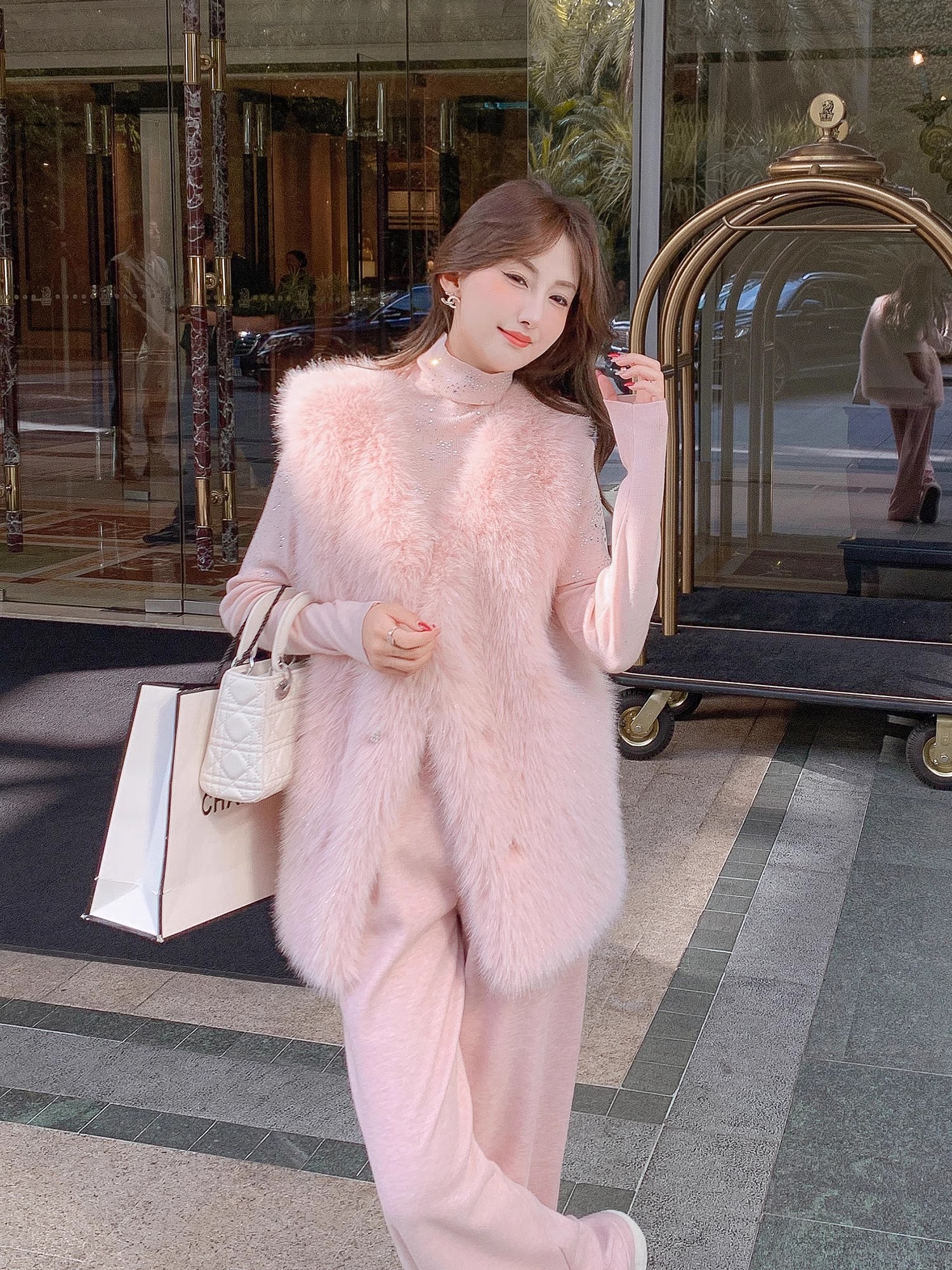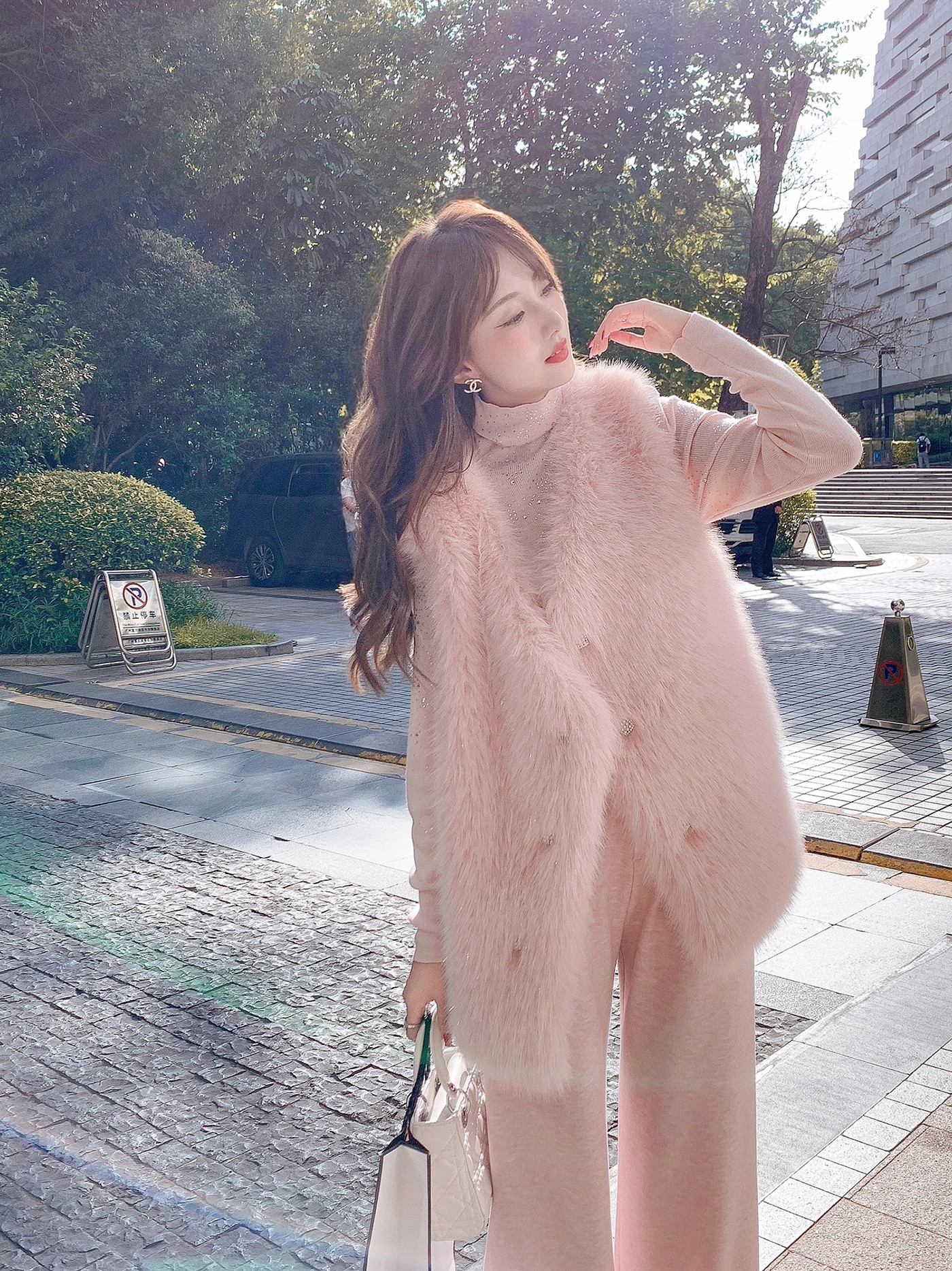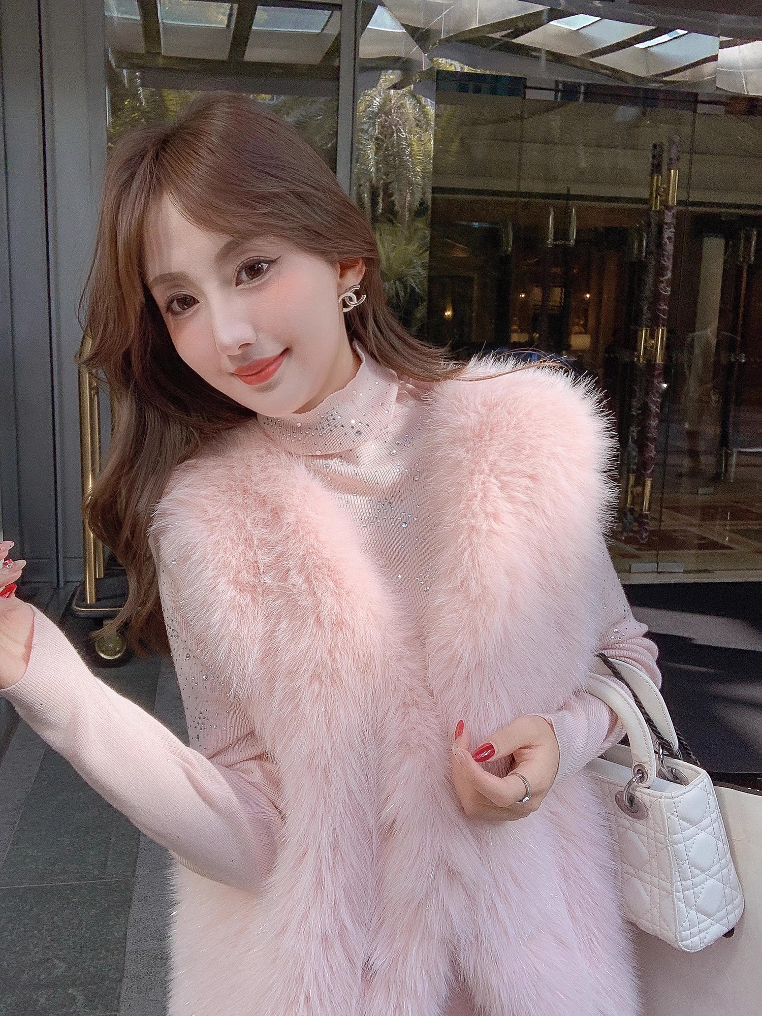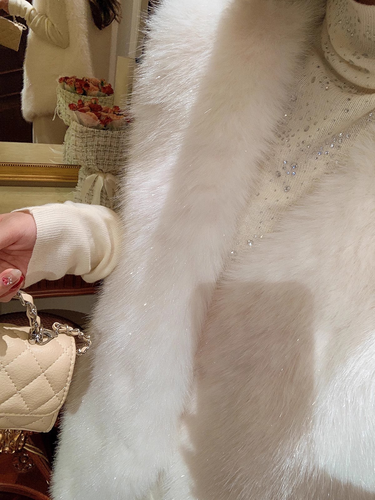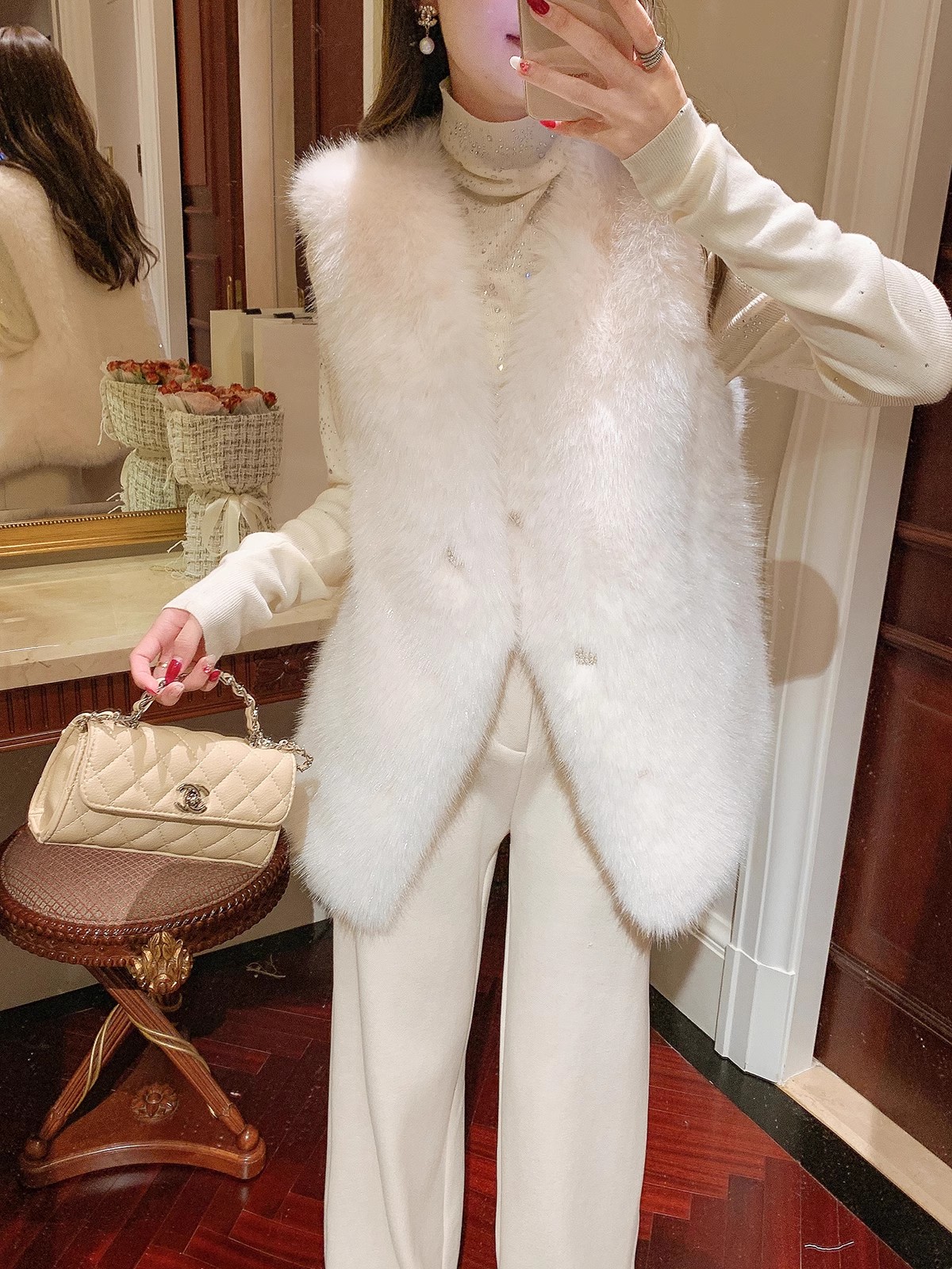 张心子【北海道初雪】秋冬气质名媛风环保毛马甲 U2410089