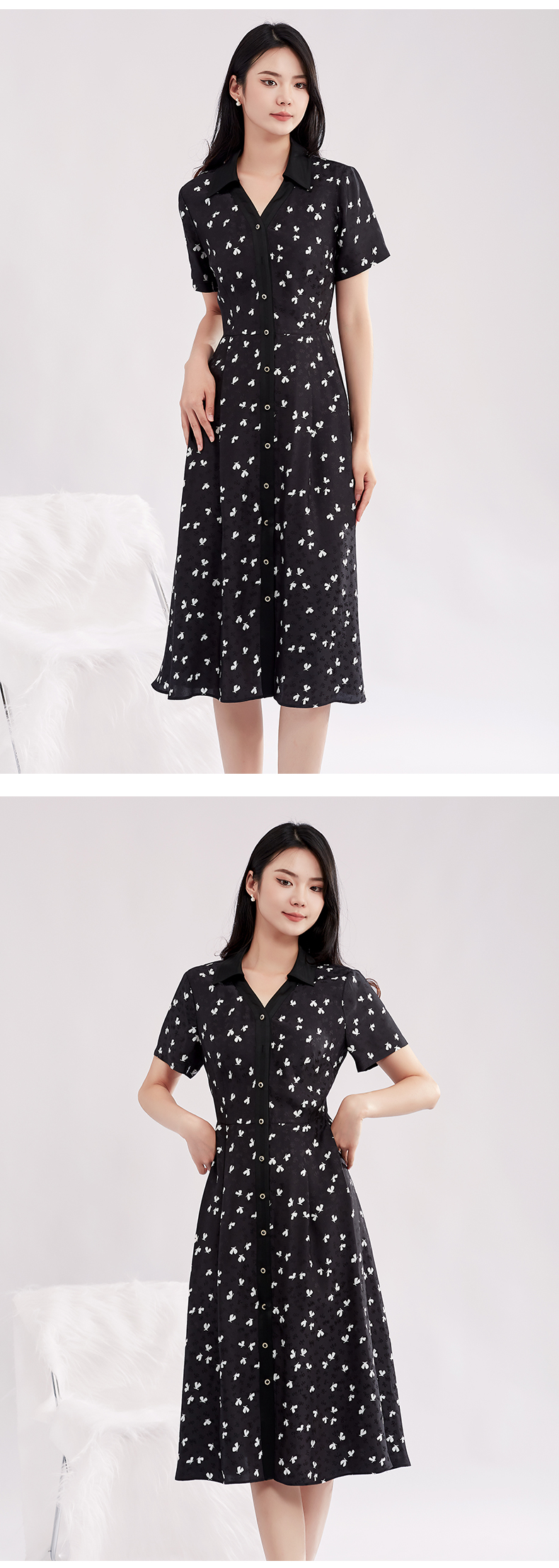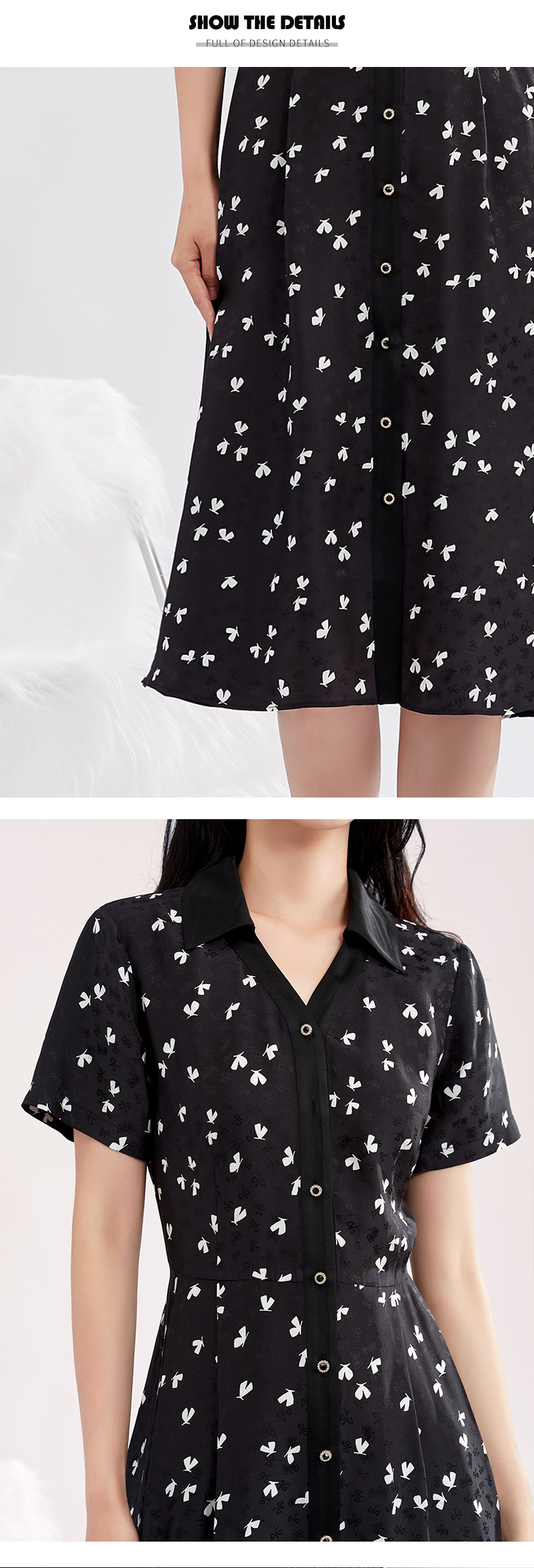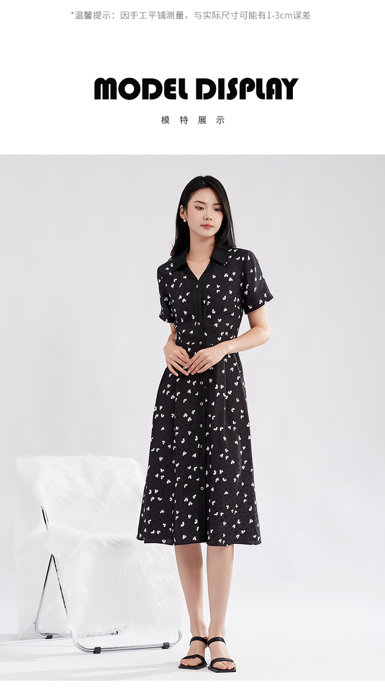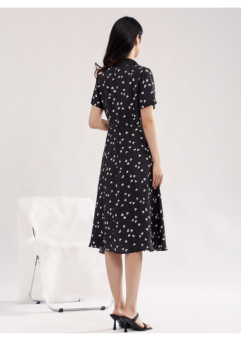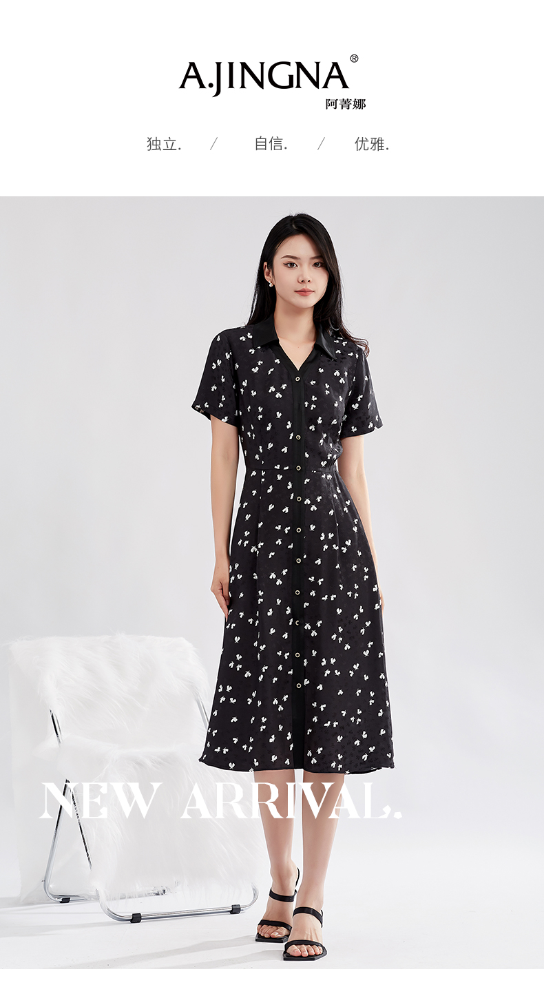 【特价款不退不换】阿菁娜高腰小蝴蝶印花优雅灵动桑蚕丝衬衫式连衣裙A27X112156