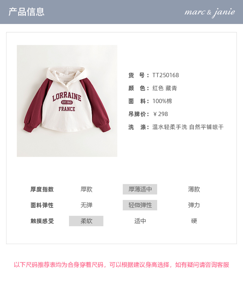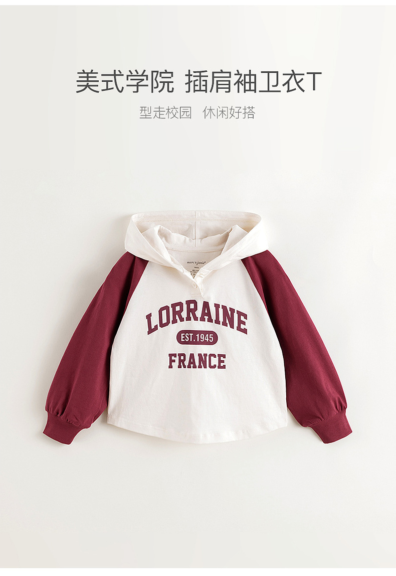 马克珍妮女童美式学院纯棉连帽卫衣T 2025年春装新款250168