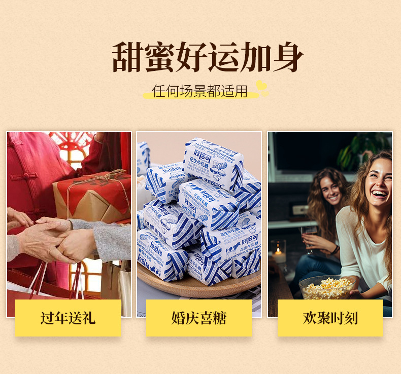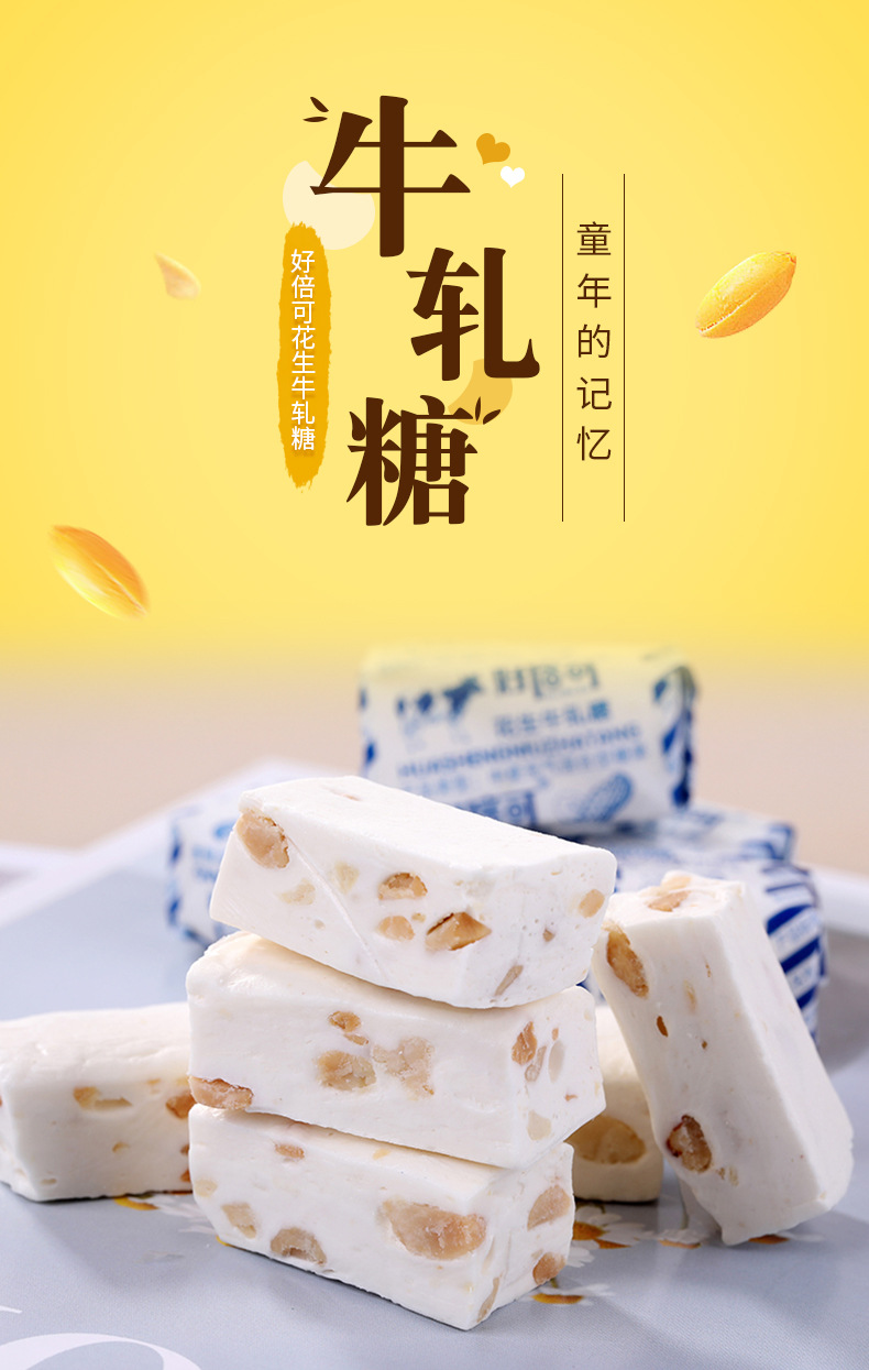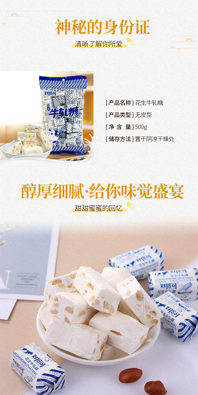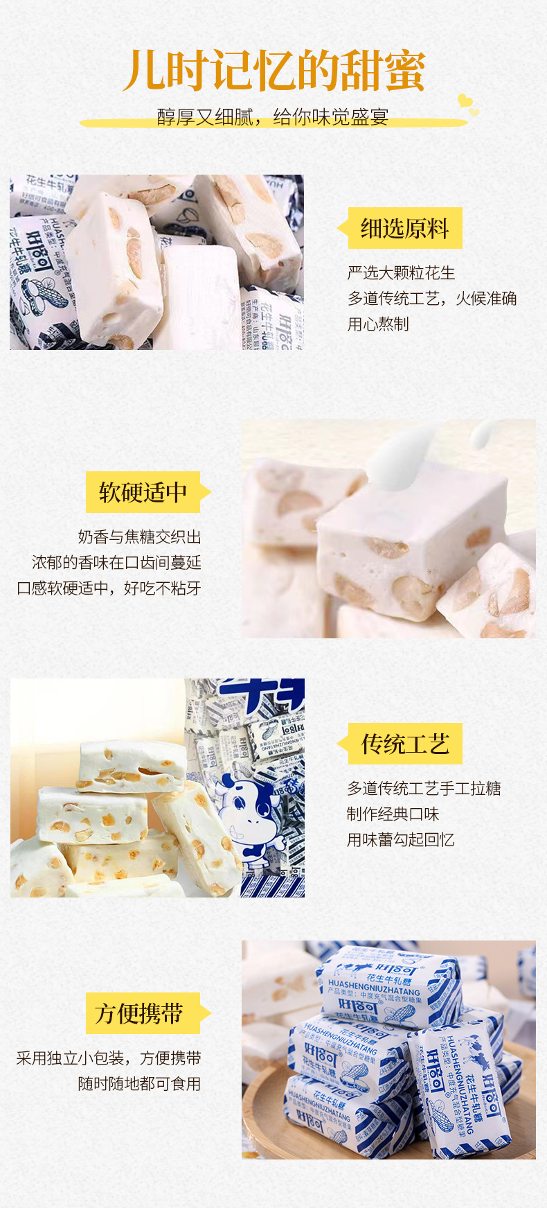 【天真无邪的儿时,甜甜蜜蜜的回忆】花生牛轧糖500克奶糖,看得见的原料醇厚又细腻一口一个过瘾不停吃,喜糖年货休闲糖果软糖袋装糖果传统风味QQ