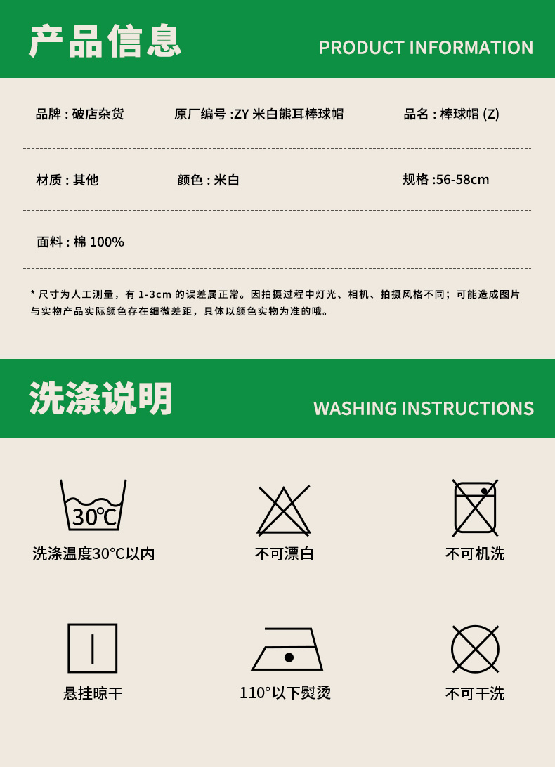ZY米白熊耳棒球帽-纪念日百货门店同款169393356