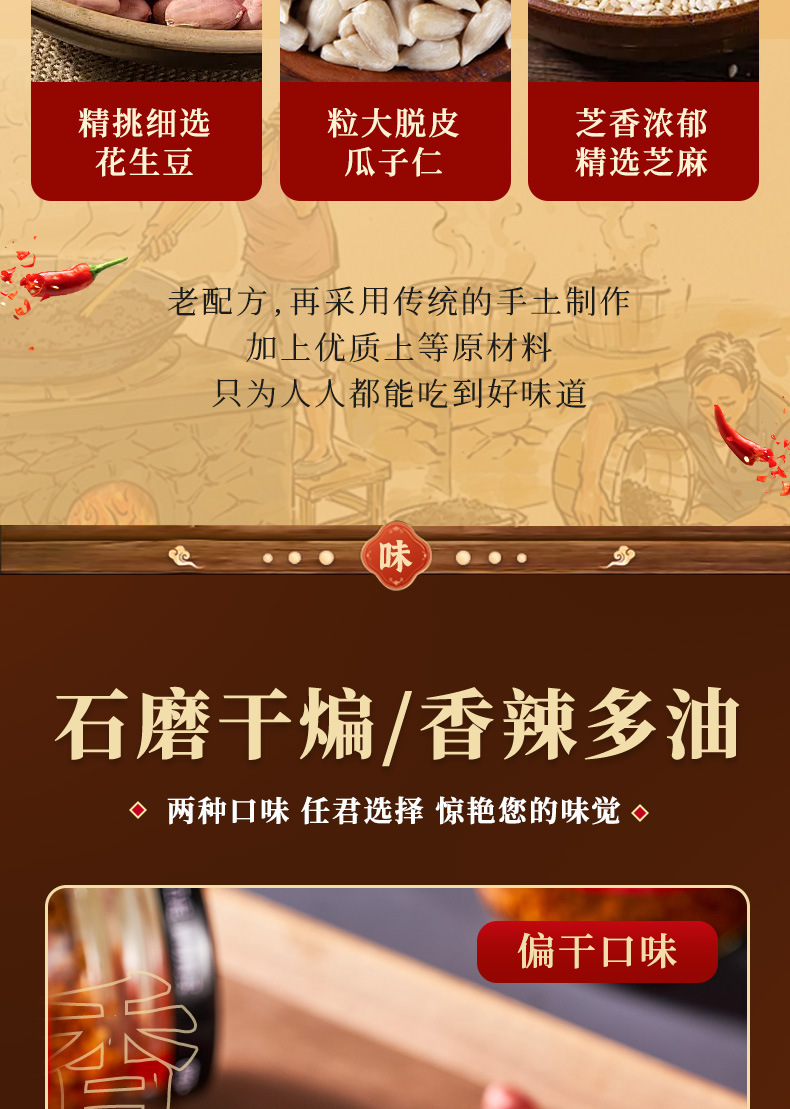 【超下饭❗ 花生辣椒酱芝麻酱】舌尖上的美味,甄选品质原料制作,石磨干煸/香辣多油两种口味任选,下饭拌面酱沂蒙山农家手工花生瓜子碎辣椒酱L