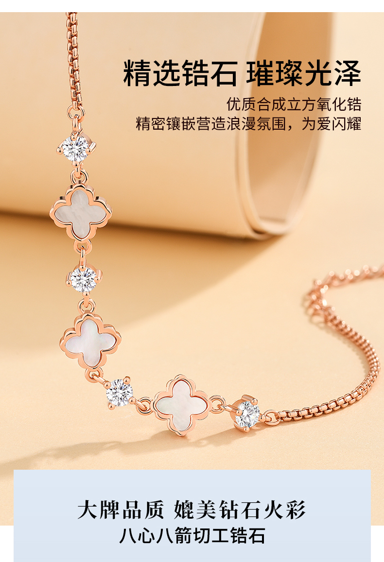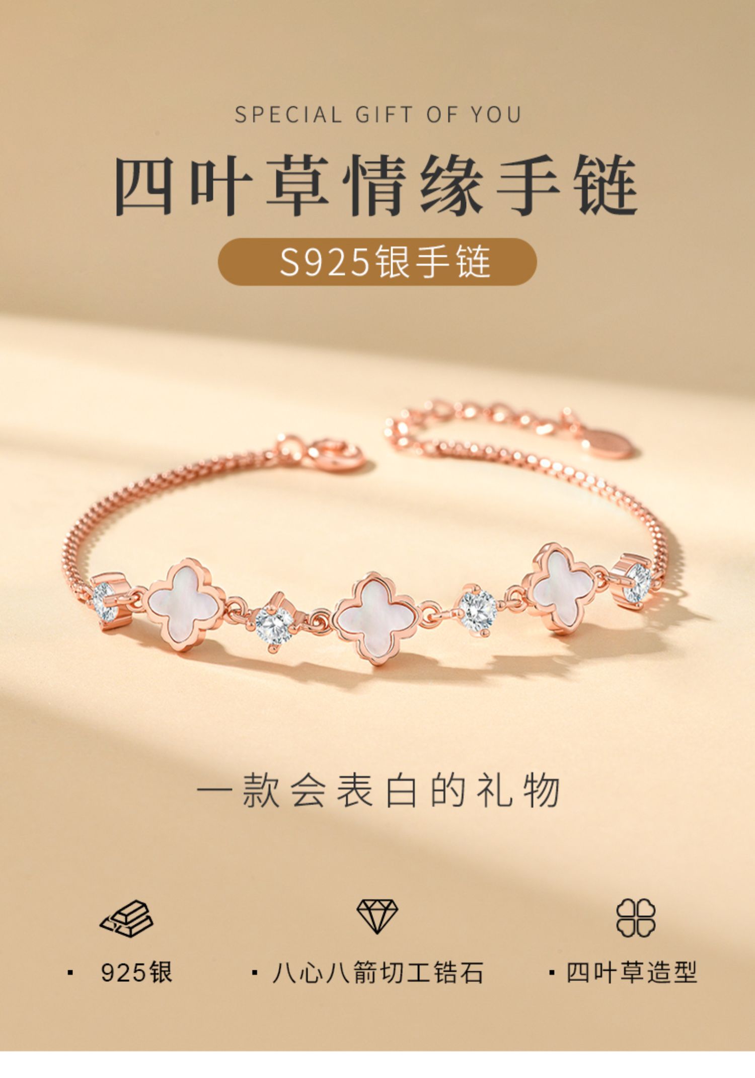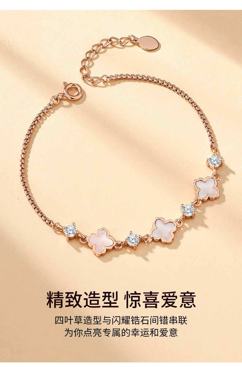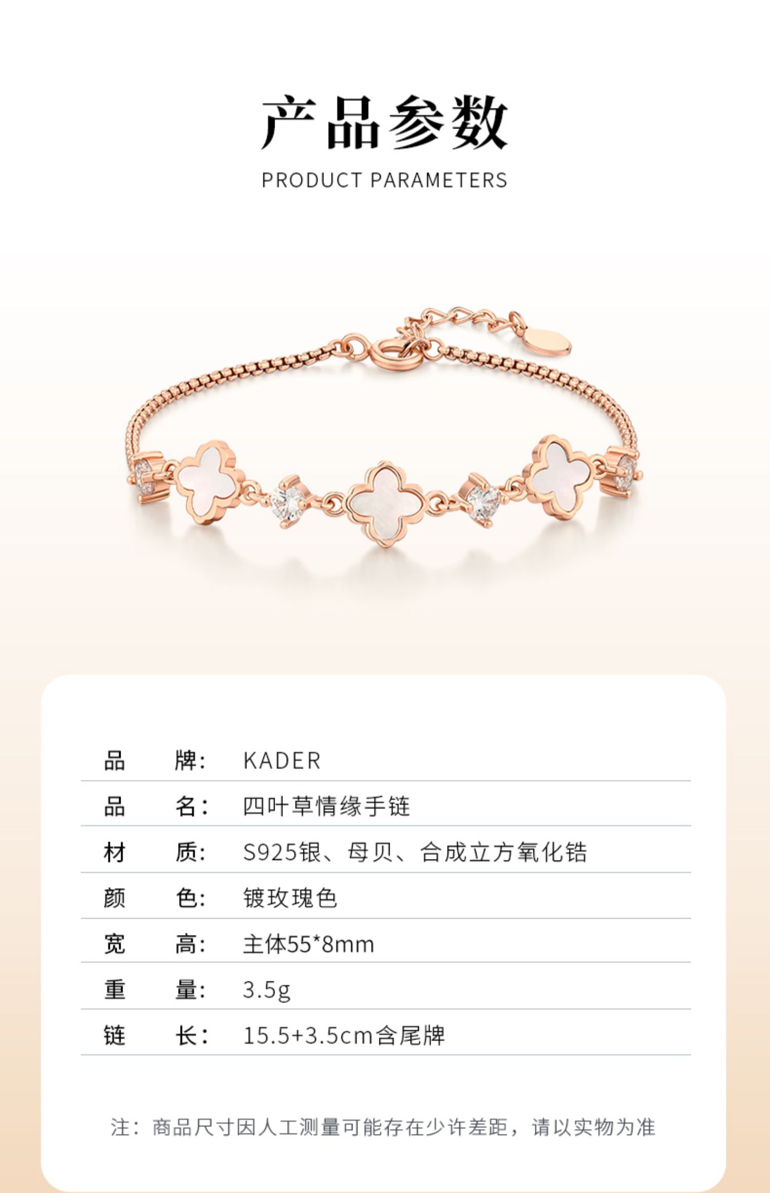 卡蒂罗KADER四叶草纯银手链S925女生夏ins小众设计2022年新款七夕礼物送女友