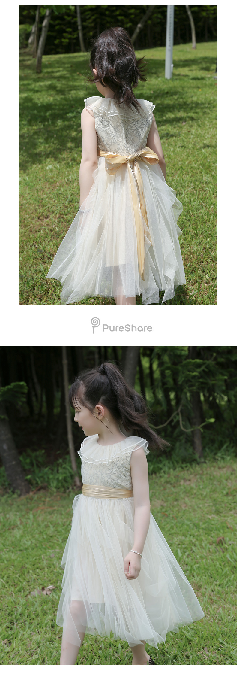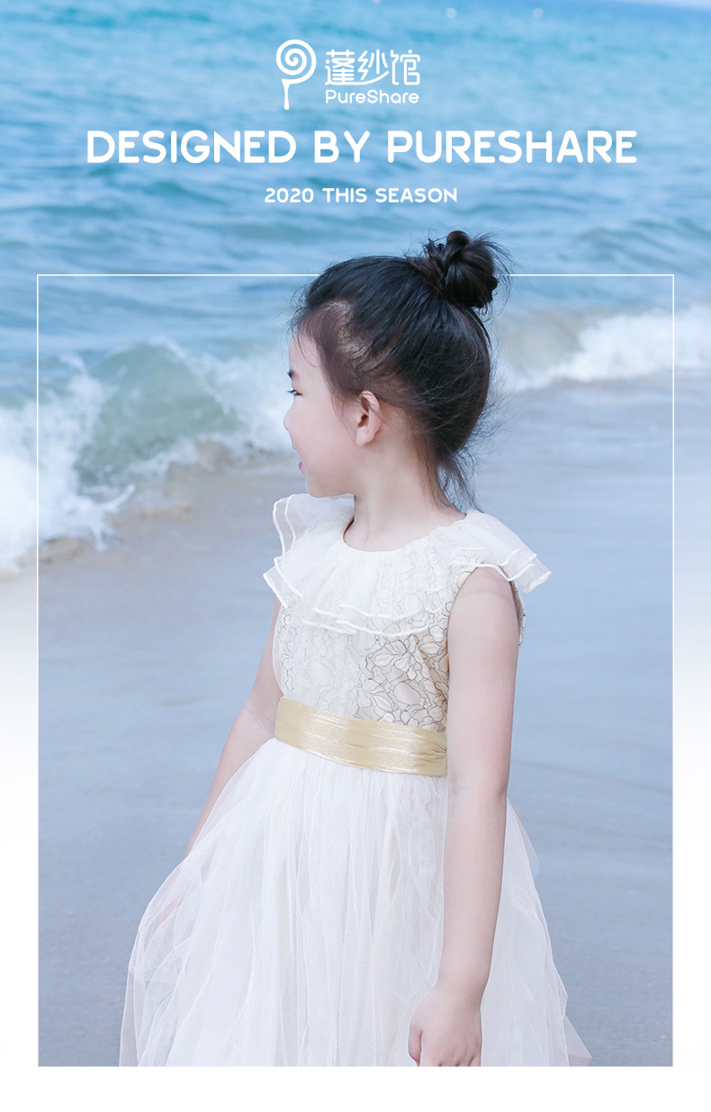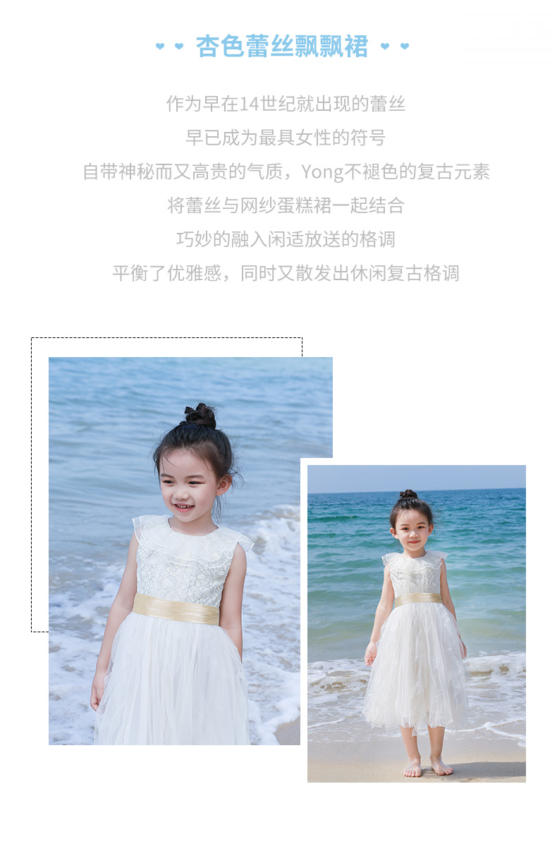 pureshare 女童连衣裙夏季新款蕾丝蓬蓬纱宝宝裙子礼服-杏色蕾丝飘飘裙