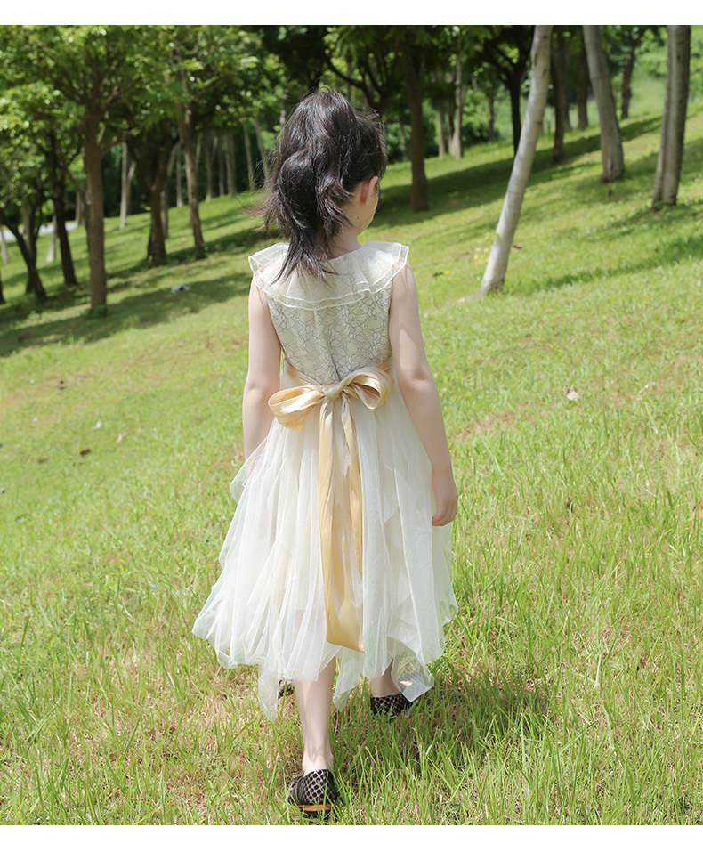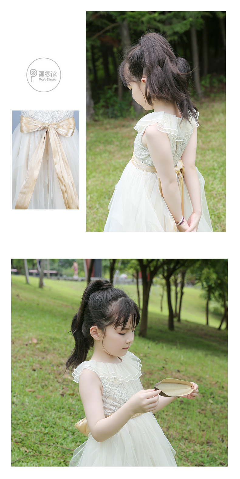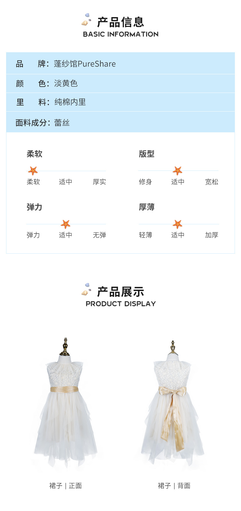 pureshare 女童连衣裙夏季新款蕾丝蓬蓬纱宝宝裙子礼服-杏色蕾丝飘飘裙