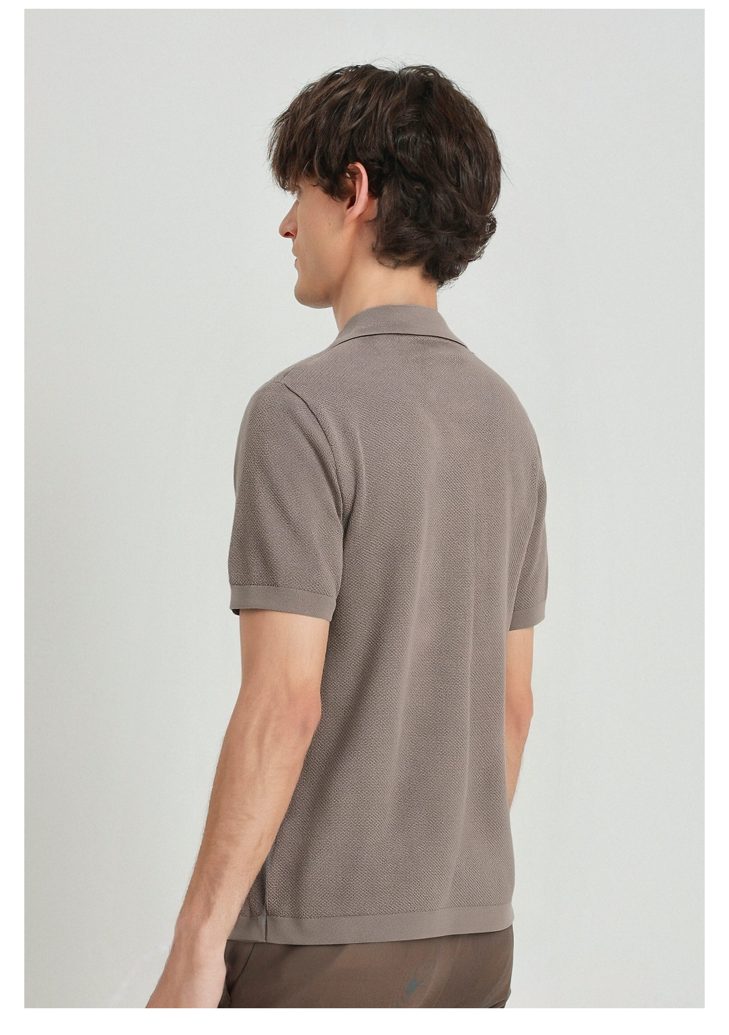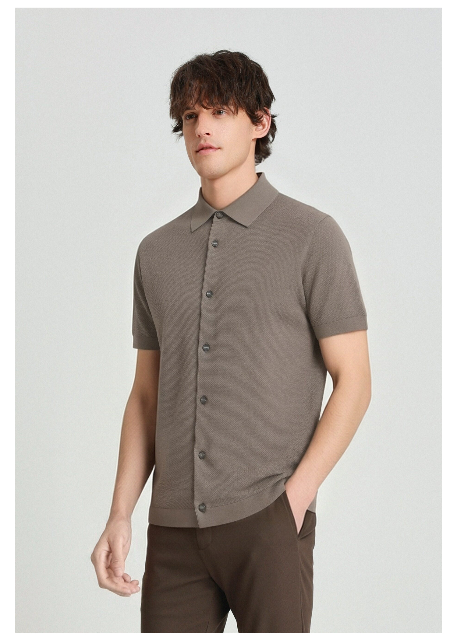 callisto咖色长绒棉弹力贝壳花型开衫T恤