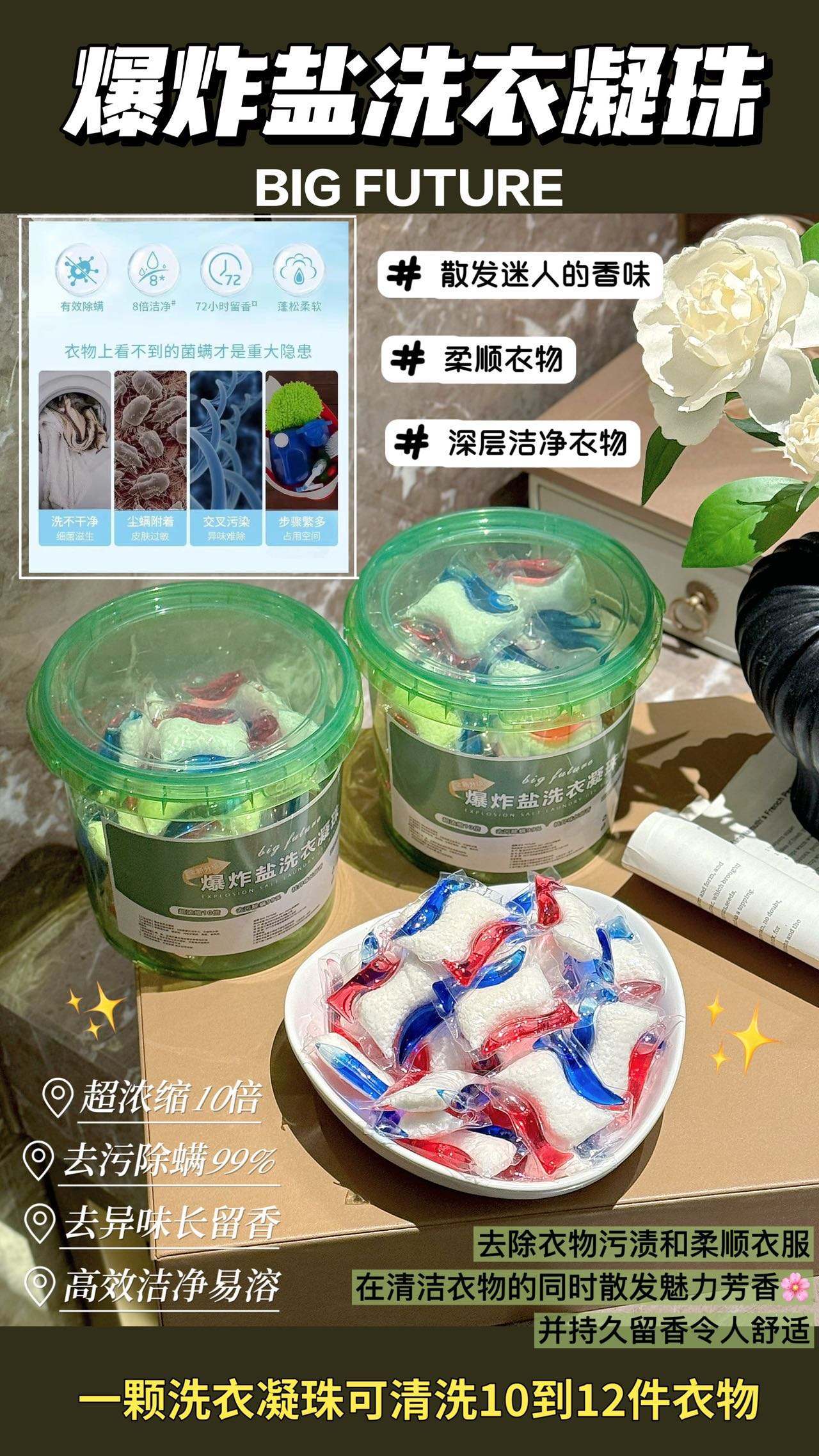 限时抢2桶!32颗/桶【BIGFUTURE爆炸盐洗衣凝珠】一颗洗衣凝珠珠=洗衣液+柔顺剂+留香珠+抑菌