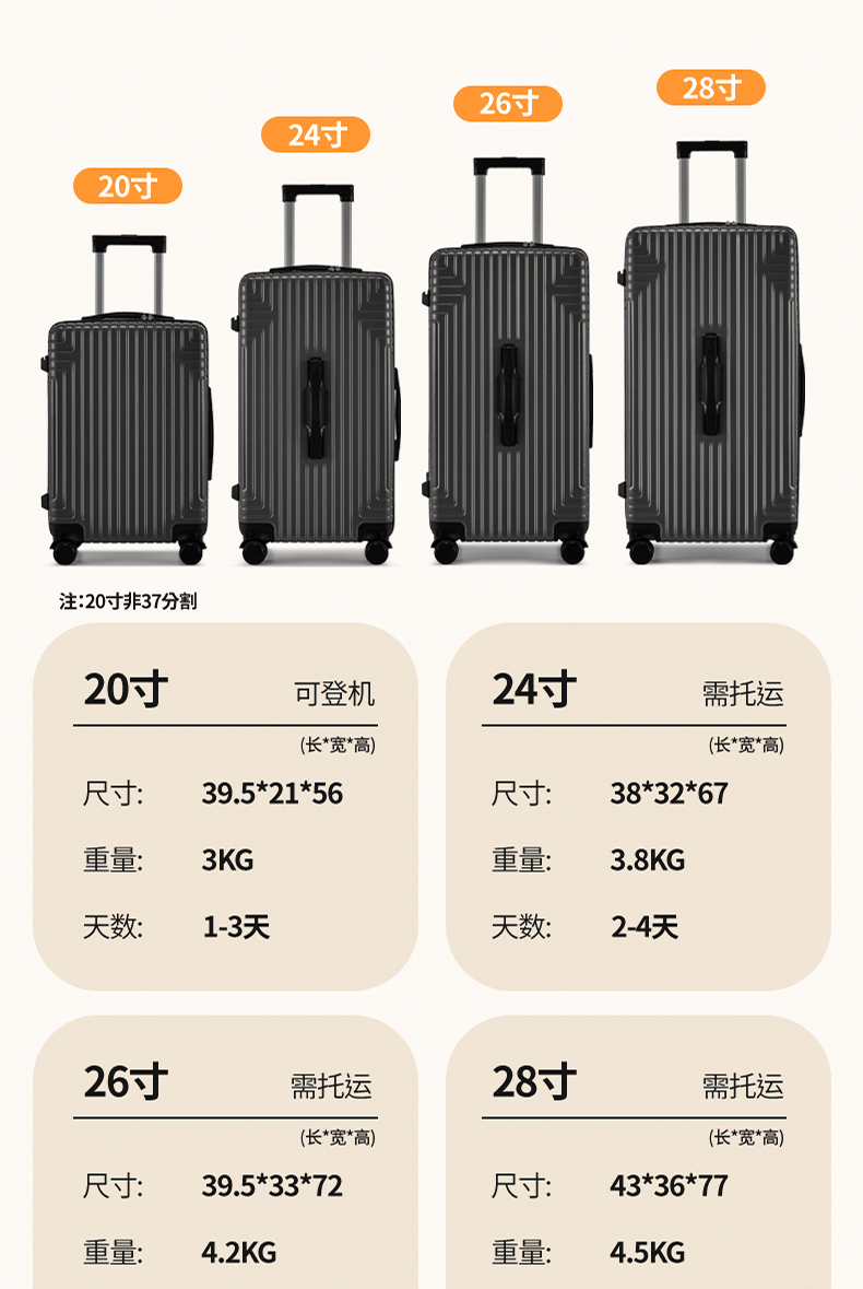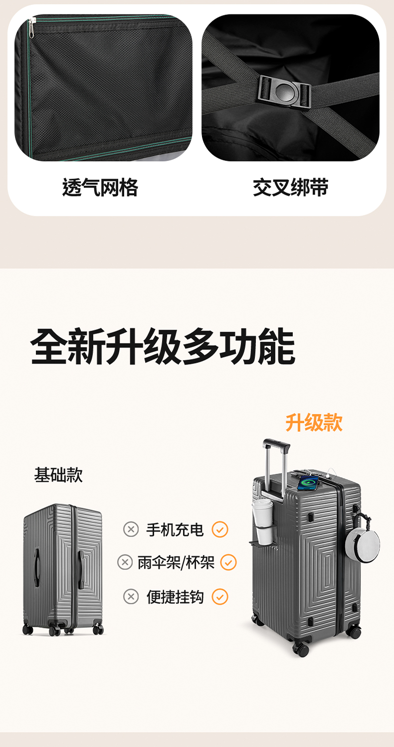 银座大容量加厚加深箱体拉链箱出国必备6876L系列