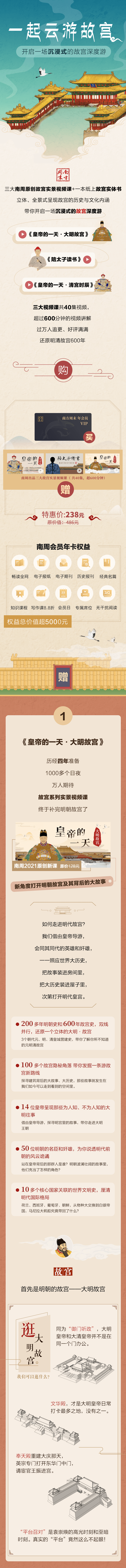 会员开通成功后,进入南方周末App,点击【严选】-【视频课程】-【皇帝的一天·大明故宫】即可领取观看。