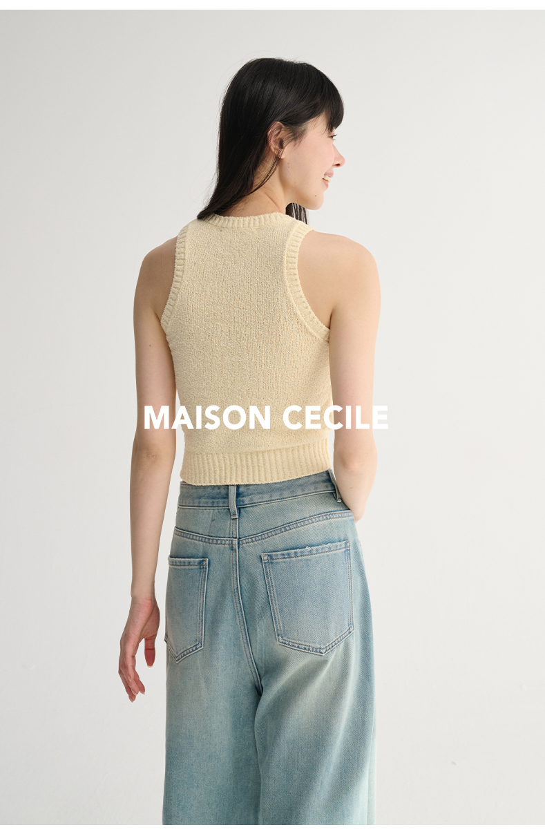 MAISON CECILE五色/全新升级纱线粗针织肌理颗粒感毛织无袖背心