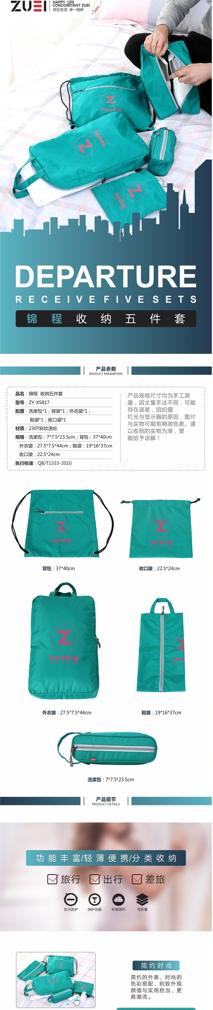卓一 ZUEI锦程收纳五件套ZY-XSBI7 绿色