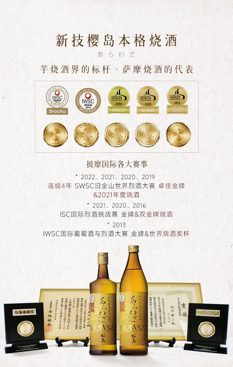 【日本原瓶烧酒】日本本坊酒造新技樱岛本格烧酒900ml单支