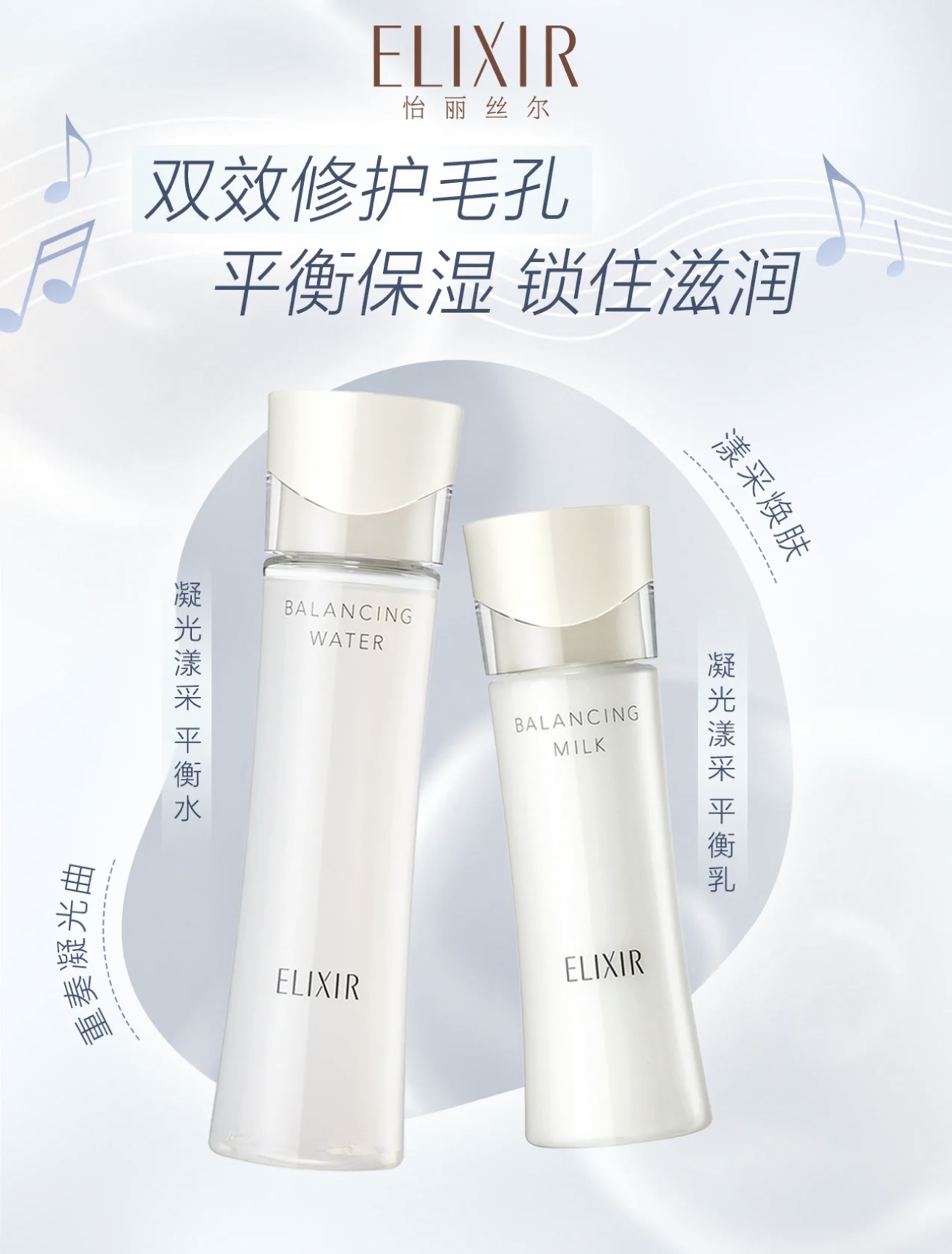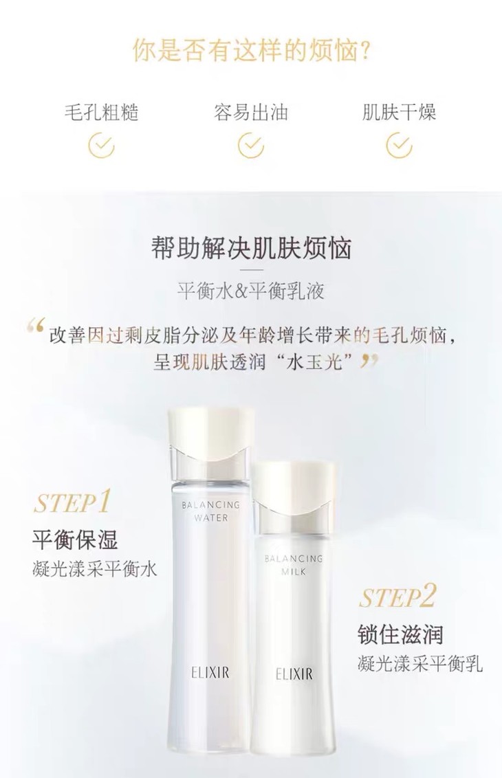 日本Shiseido/资生堂elixir怡丽丝尔平衡水乳套装 凝光漾采水油平衡水乳套装