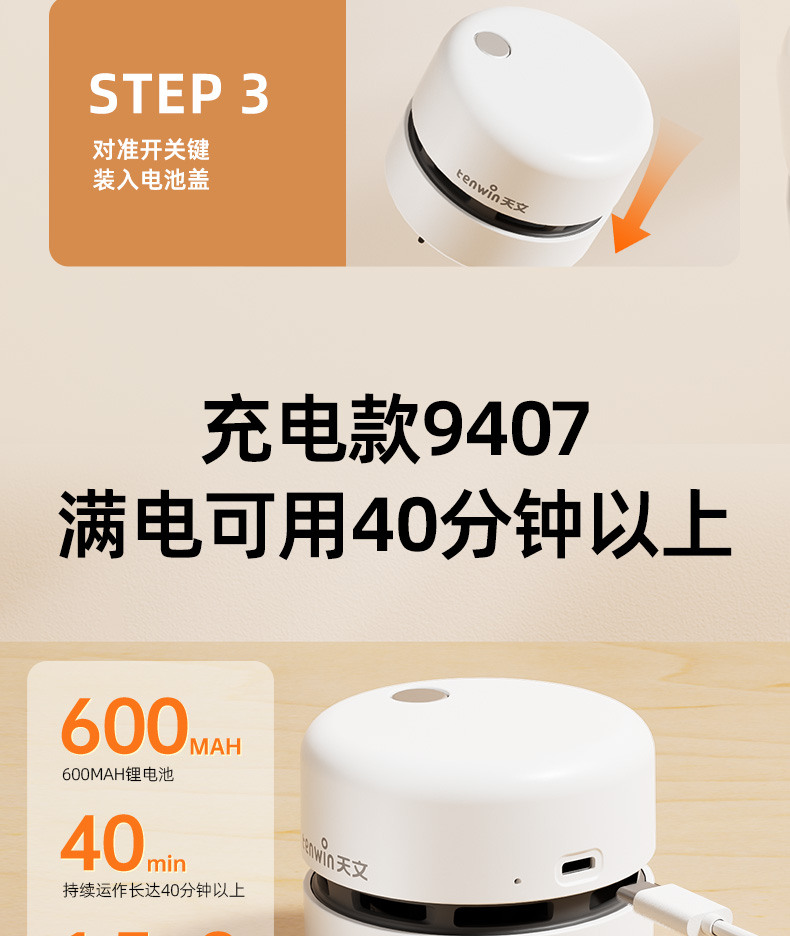 天文大吸力桌面吸尘器9407(充电款)