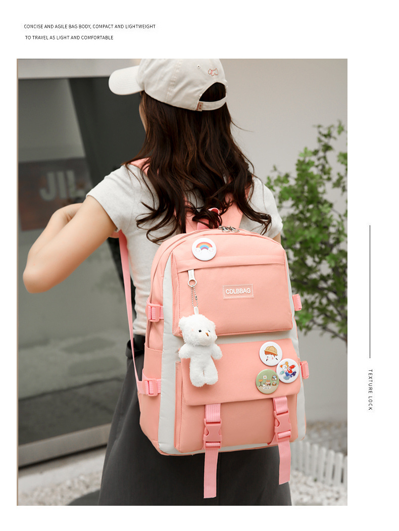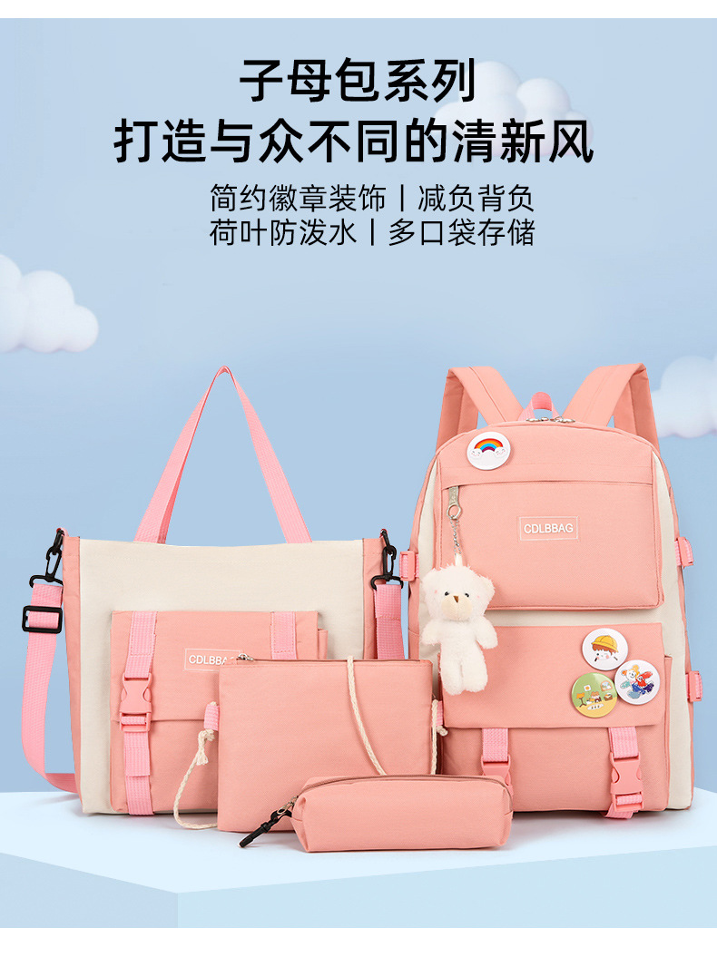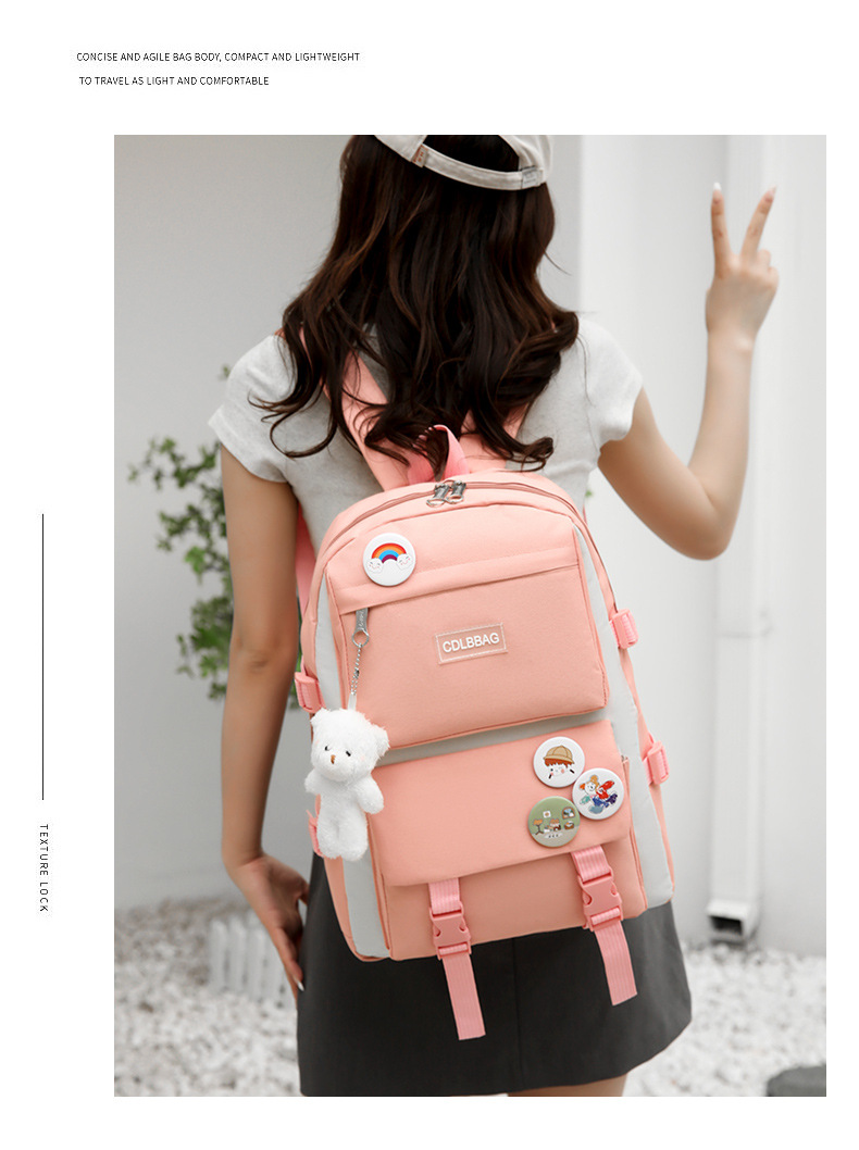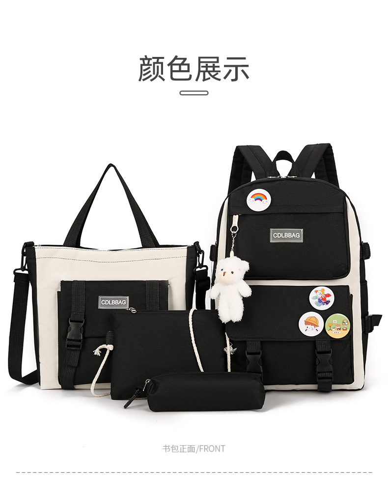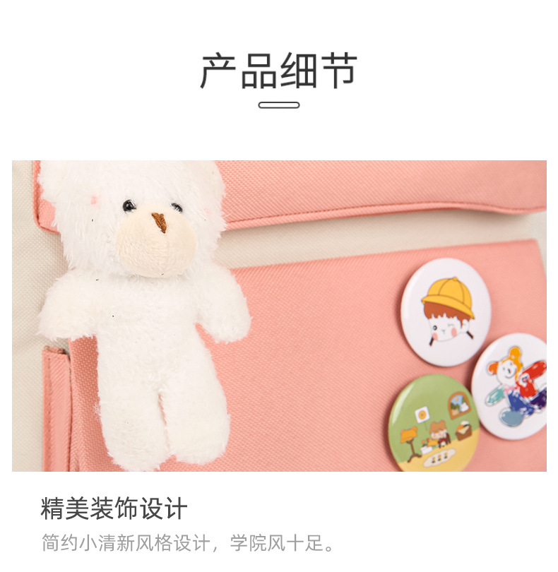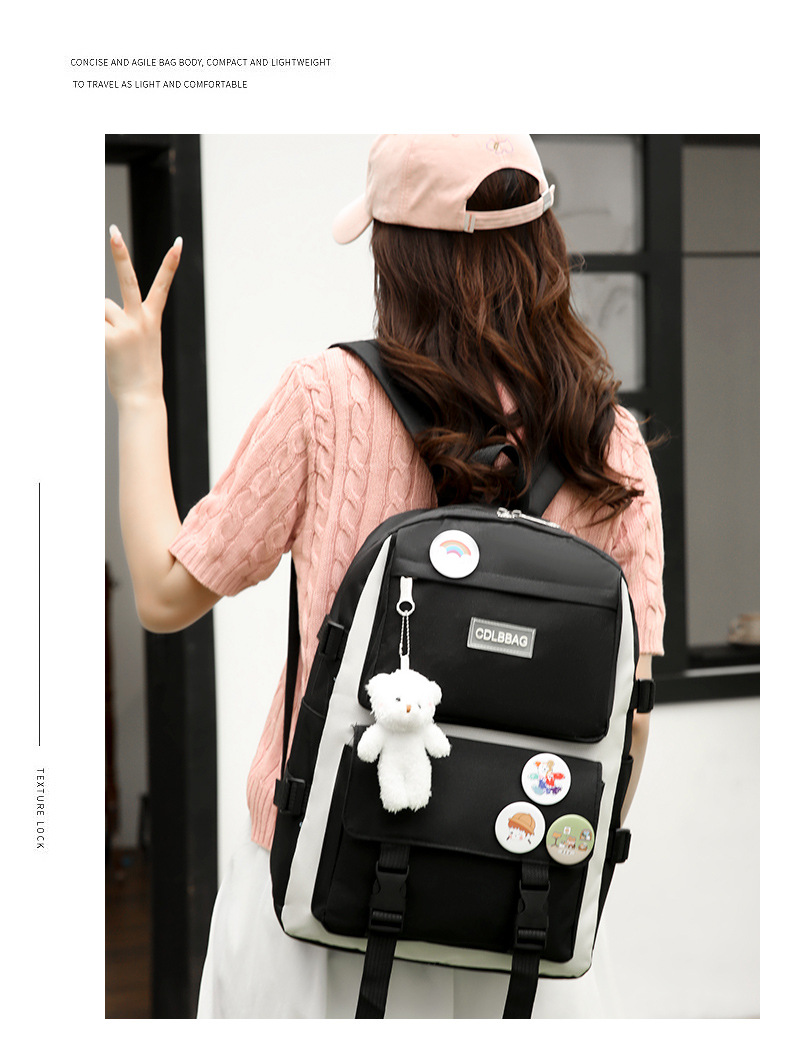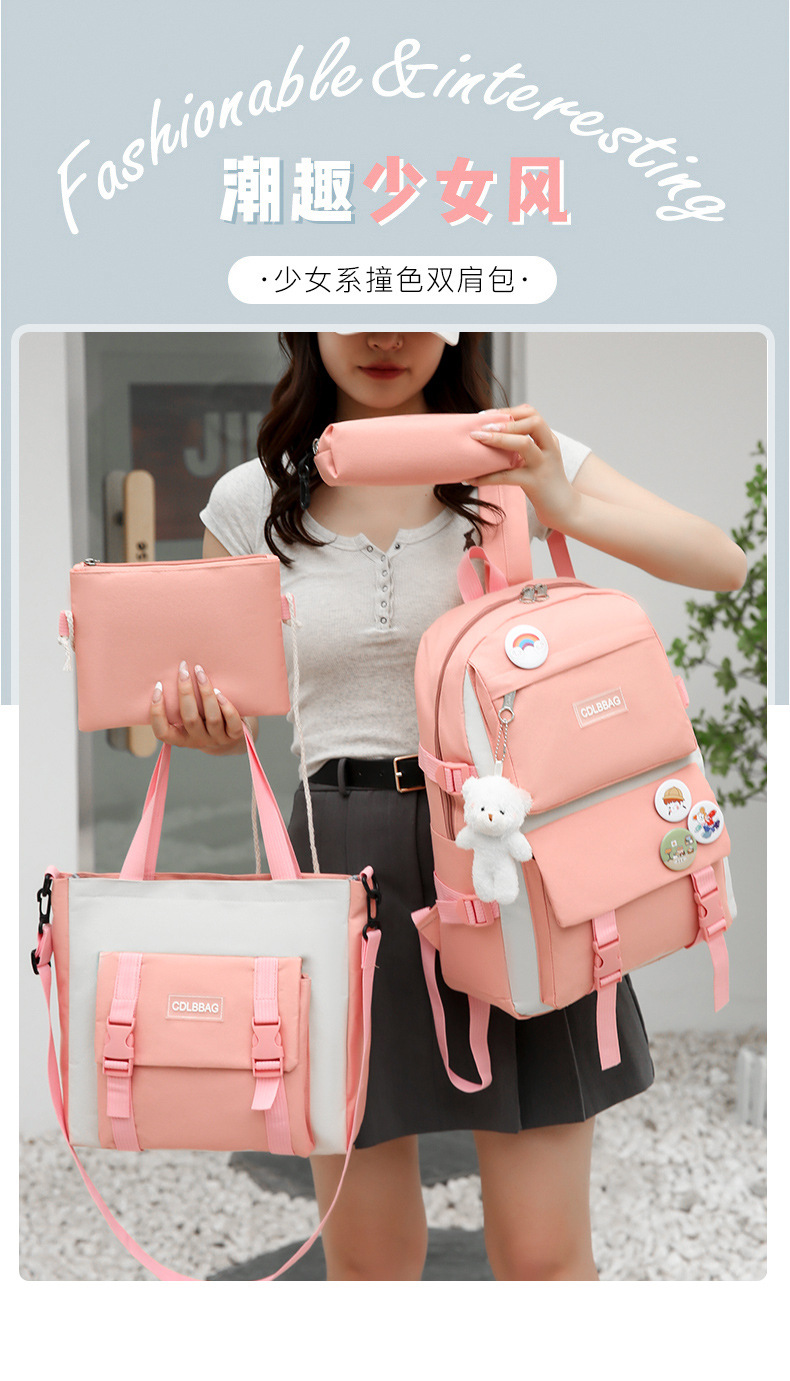 韩版学生时尚四件套书包青春校园双肩包套装大容量减负背包(赠徽章四枚)