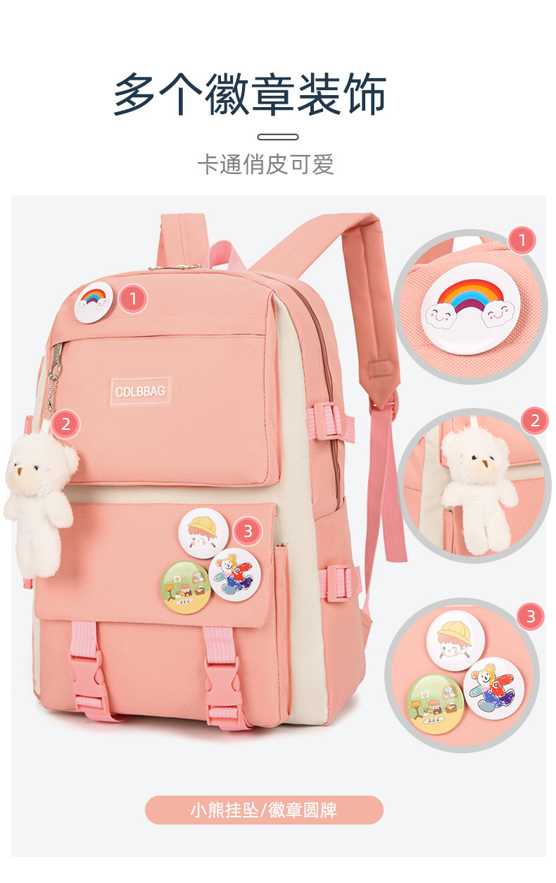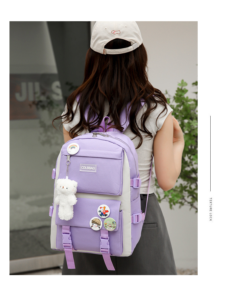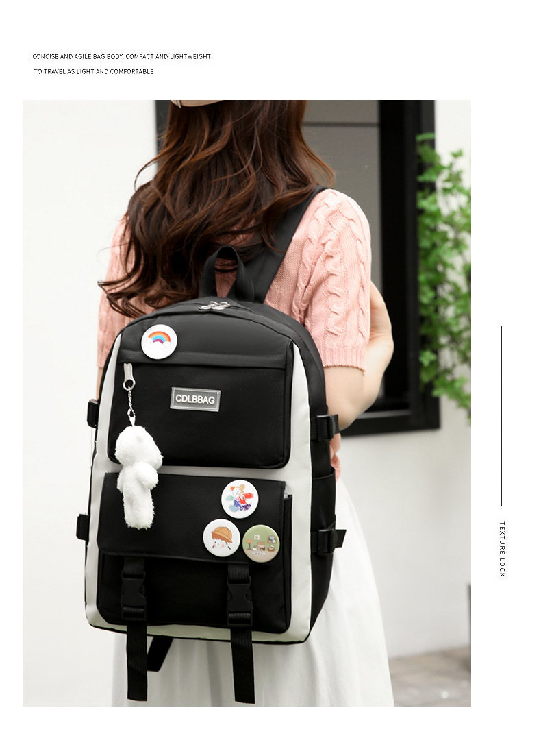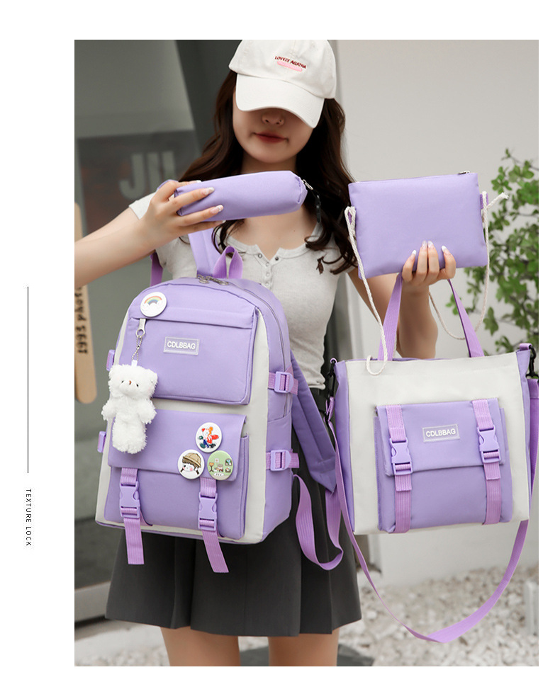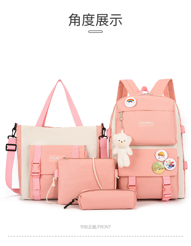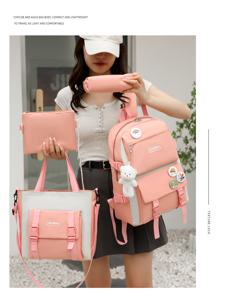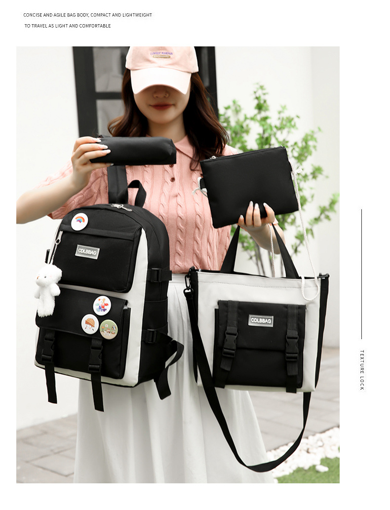 韩版学生时尚四件套书包青春校园双肩包套装大容量减负背包(赠徽章四枚)