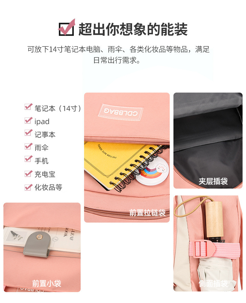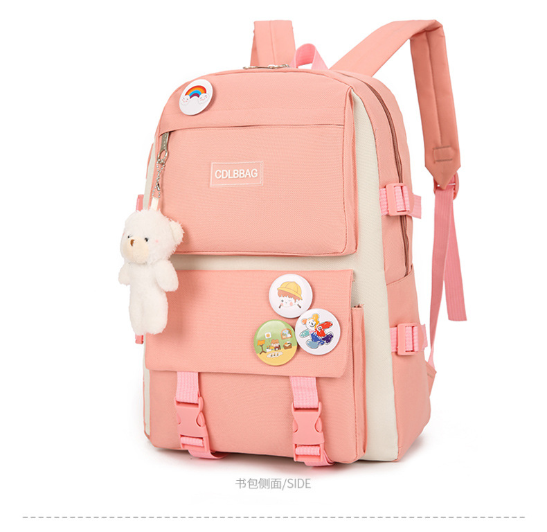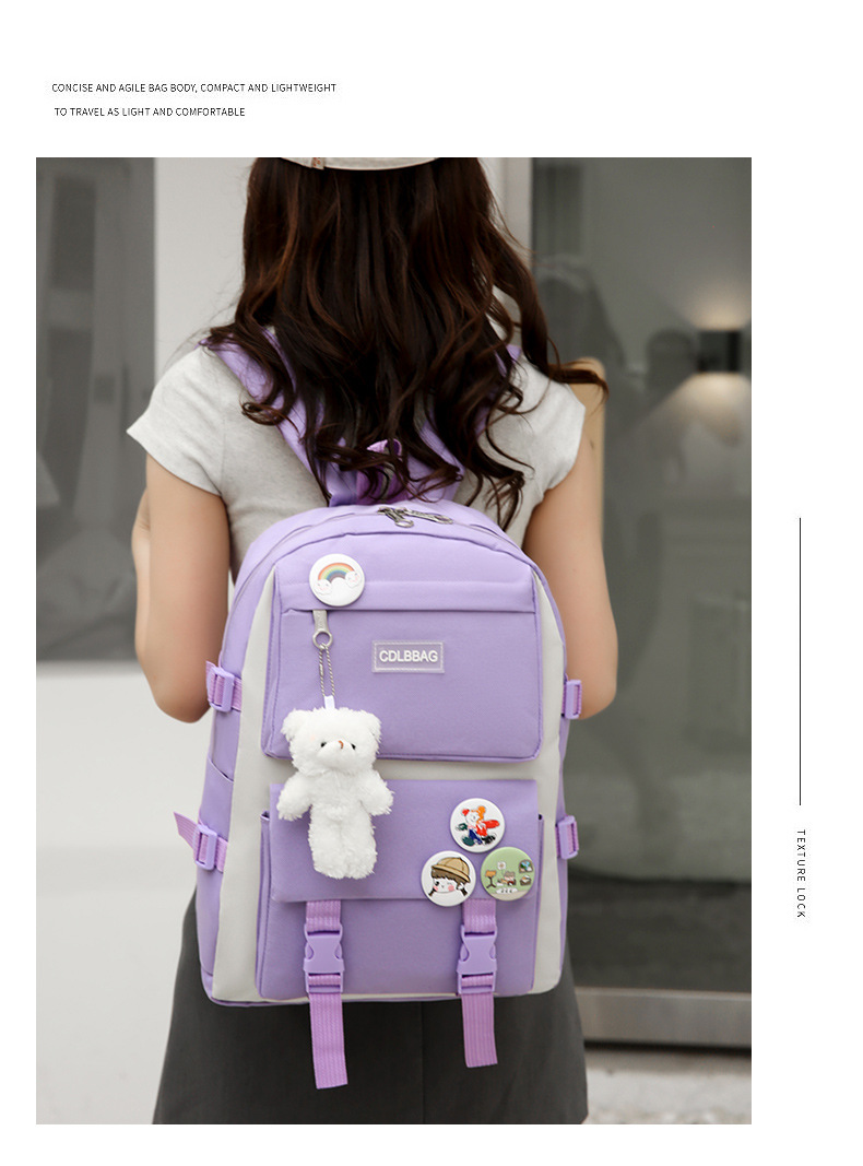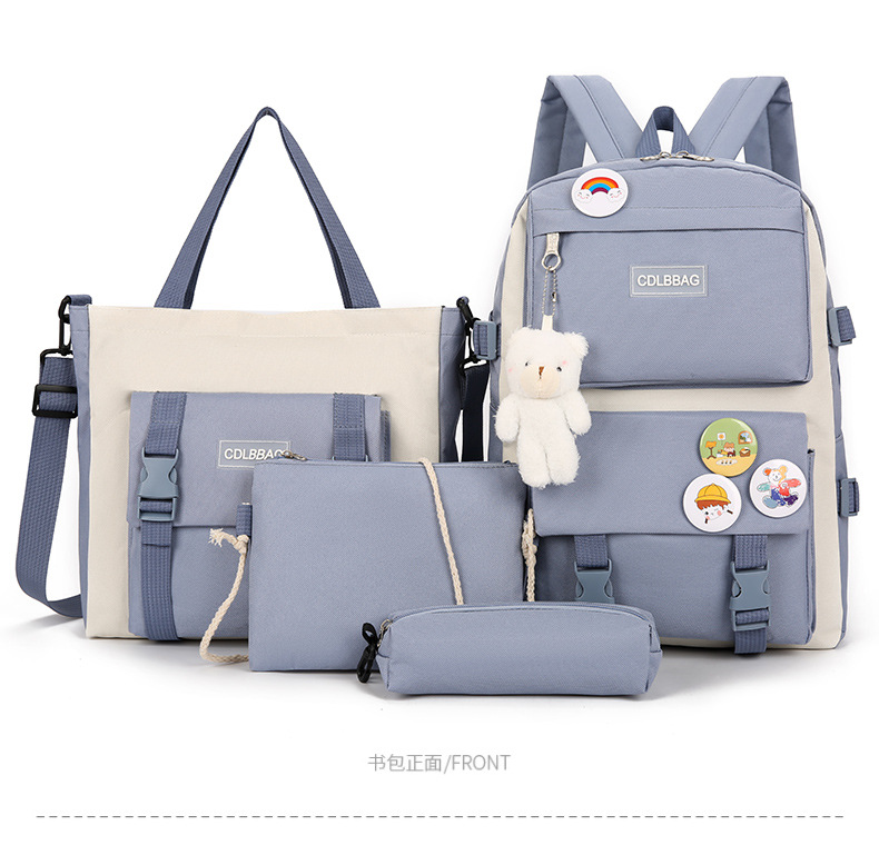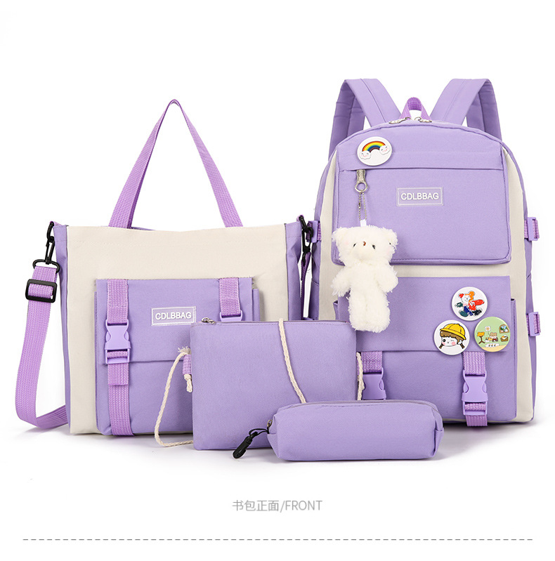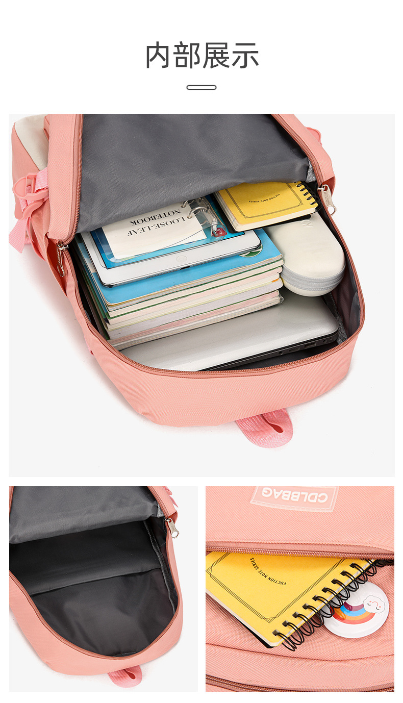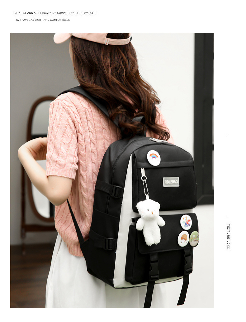 韩版学生时尚四件套书包青春校园双肩包套装大容量减负背包(赠徽章四枚)