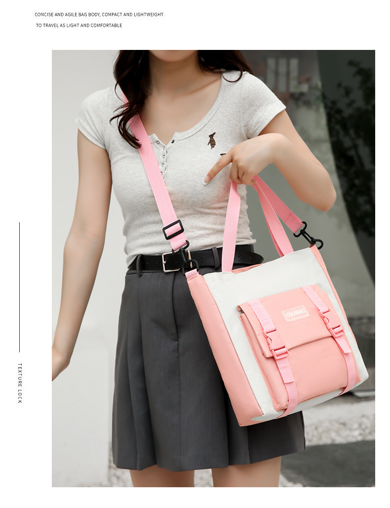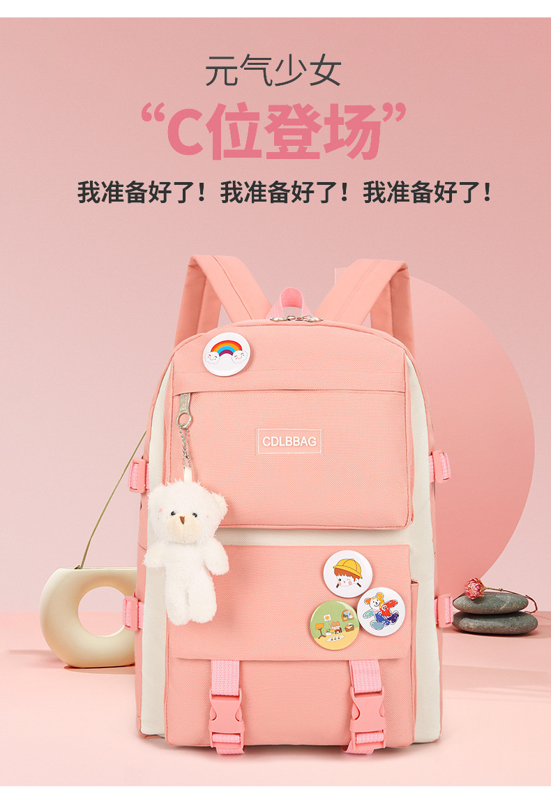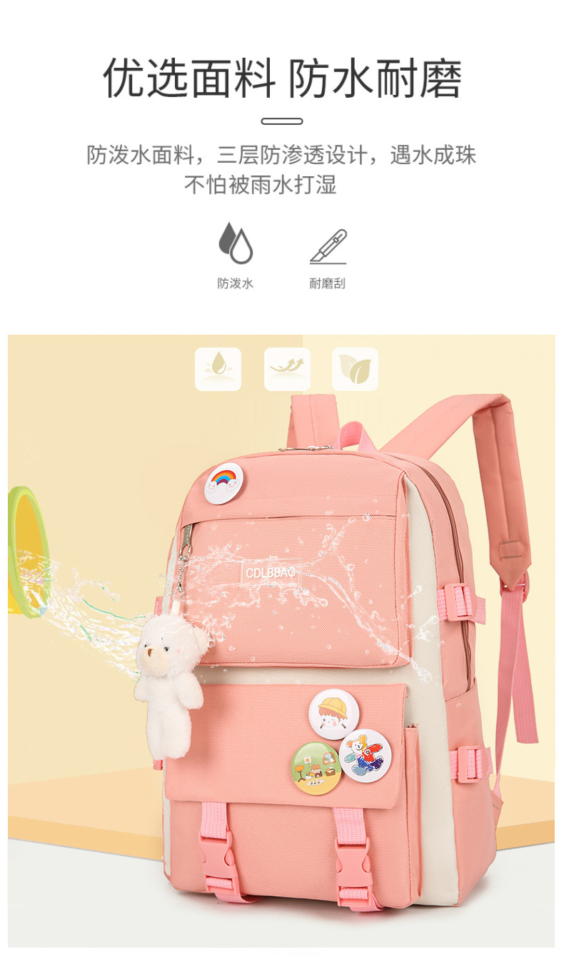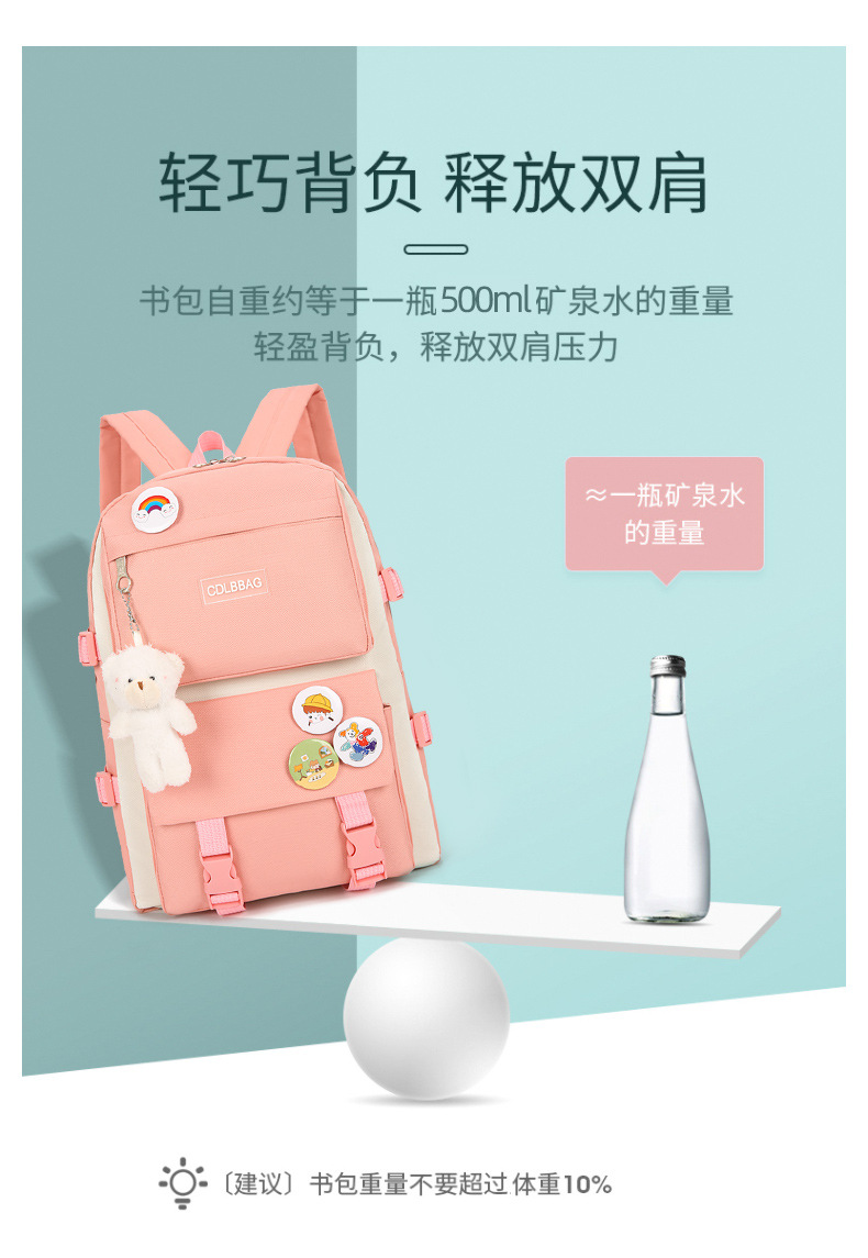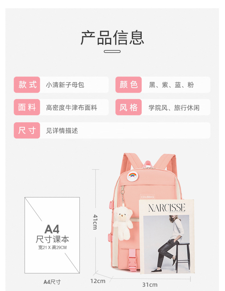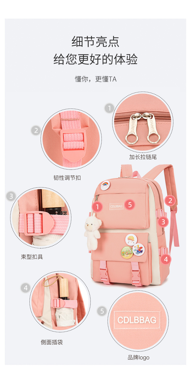 韩版学生时尚四件套书包青春校园双肩包套装大容量减负背包(赠徽章四枚)