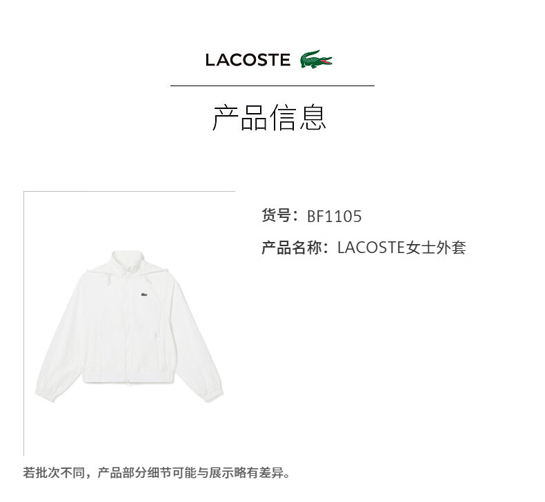 Lacoste法国鳄鱼女装新款纯色休闲百搭宽松夹克外套BF1105-98