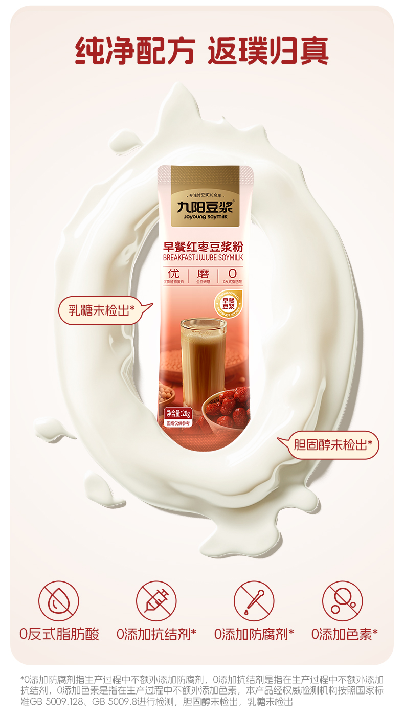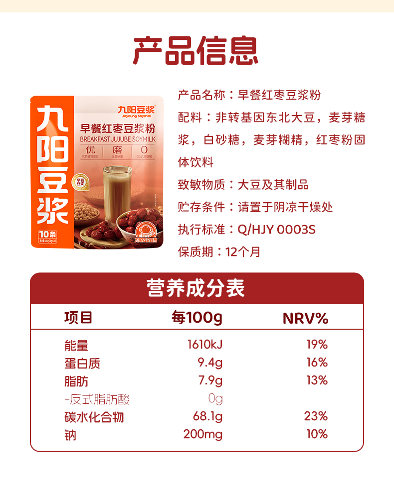 【送玻璃充电搅拌杯】九阳豆浆低嘌呤早餐红枣豆浆粉 高膳食纤维营养早餐
