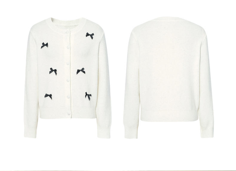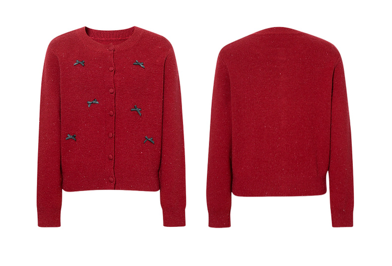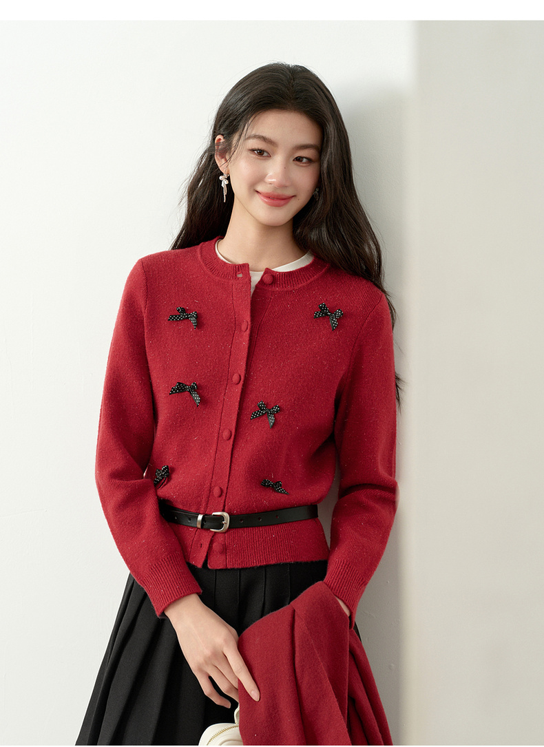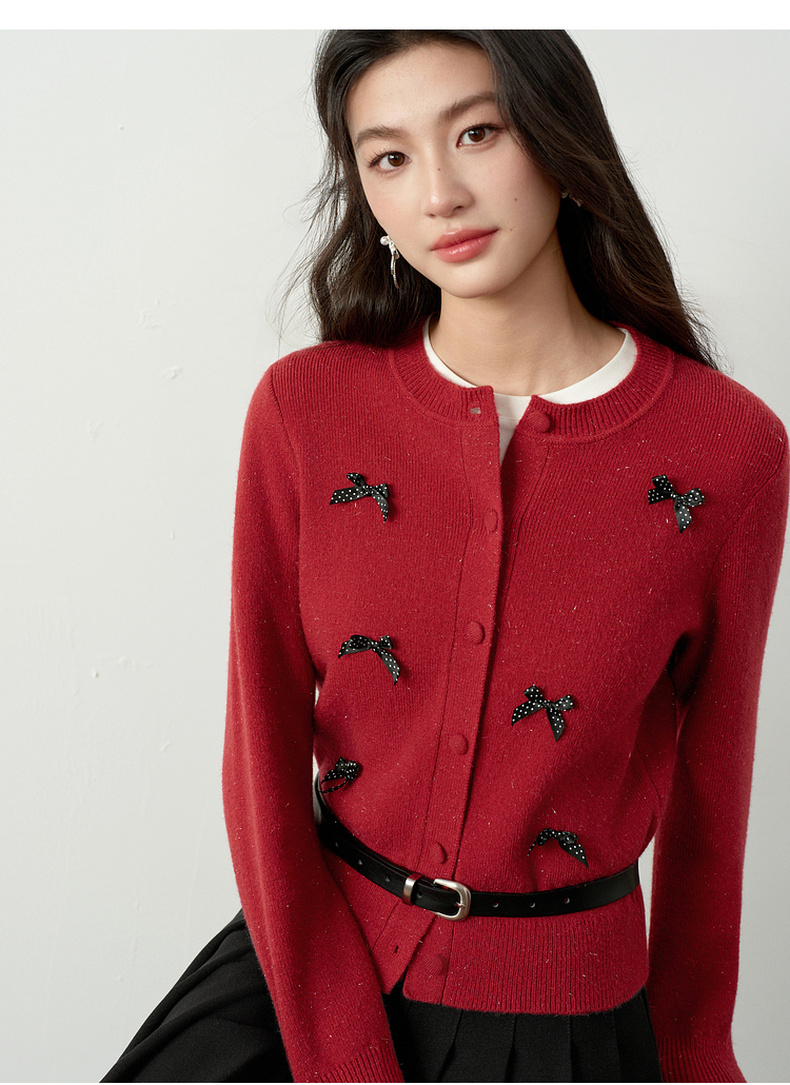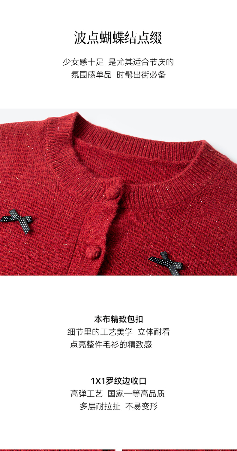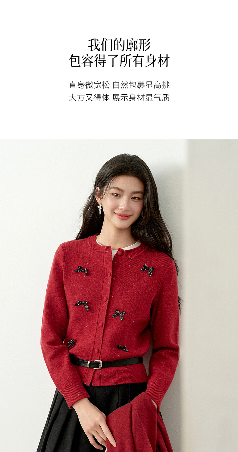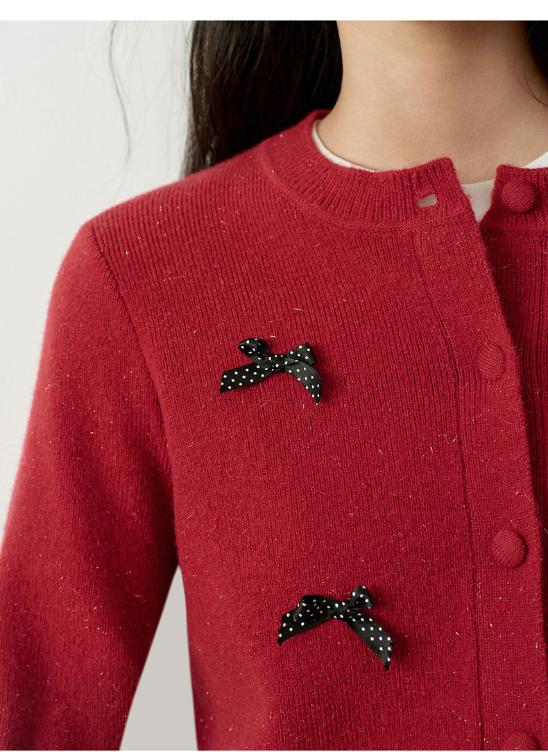 【严选】诗凡黎韩系圆领针织开衫蝴蝶结装饰2026春新款金银丝鎏光时尚毛衣7H1430651