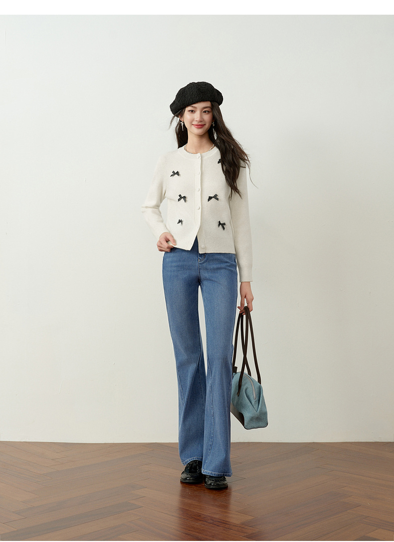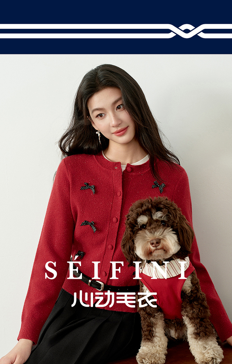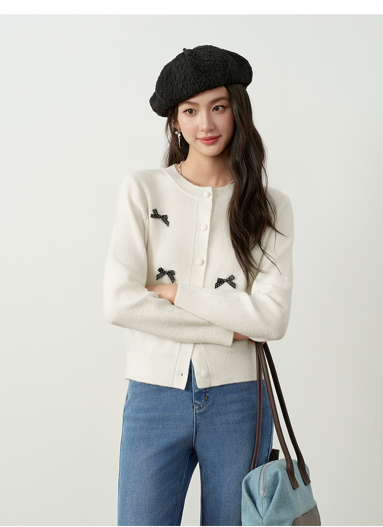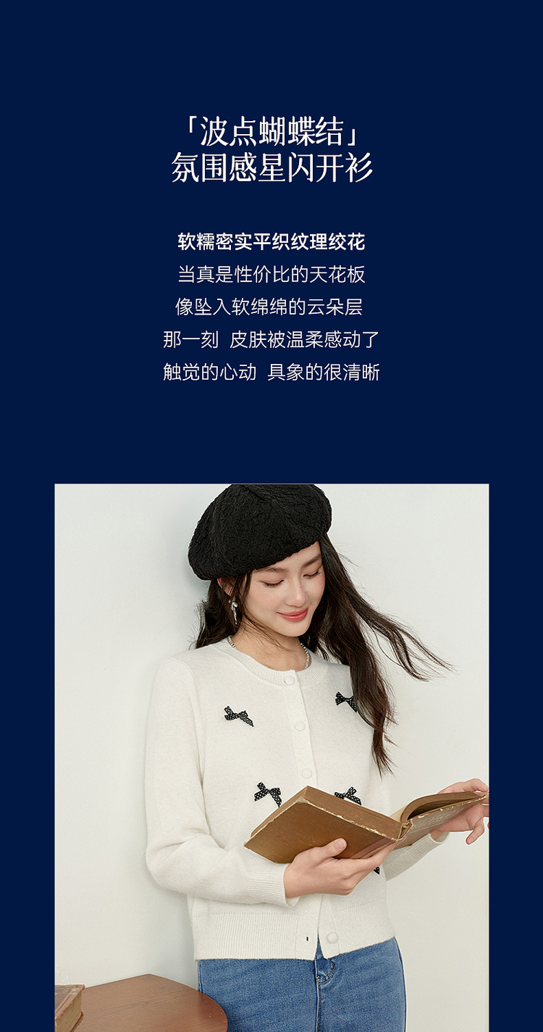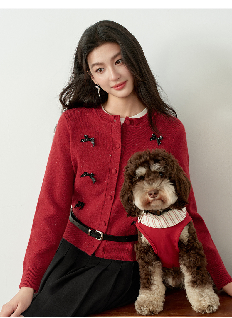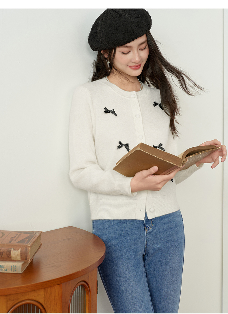 【严选】诗凡黎韩系圆领针织开衫蝴蝶结装饰2026春新款金银丝鎏光时尚毛衣7H1430651