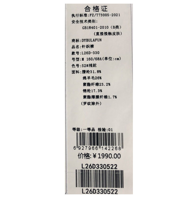戴布拉芬针织裤L26D330