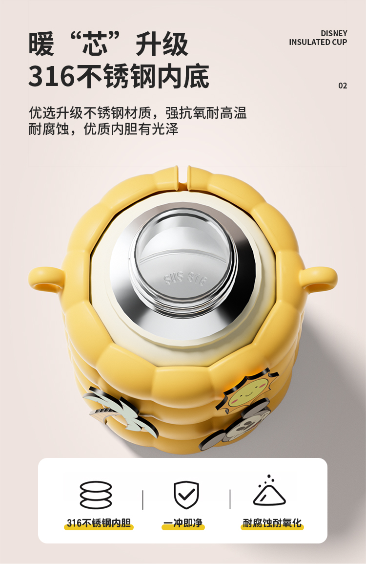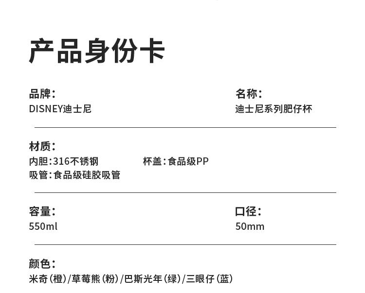 迪士尼儿童保温杯550ml大肚杯子316肥仔吸管水杯 XJC