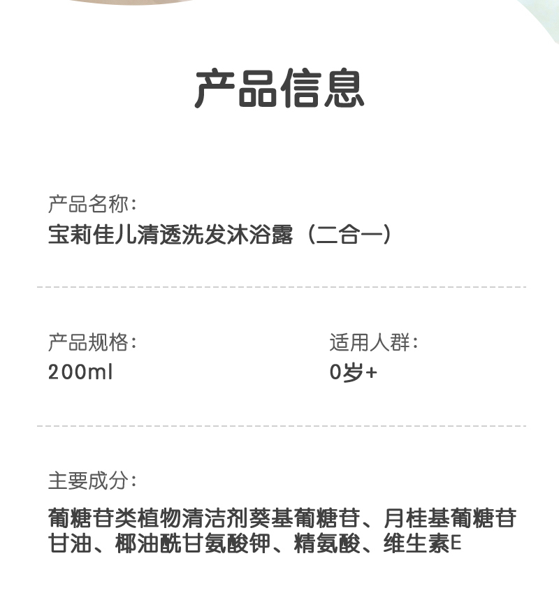 宝莉佳儿婴幼儿宝宝洗发沐浴露二合一氨基酸儿童洗发水