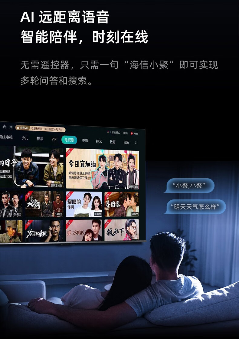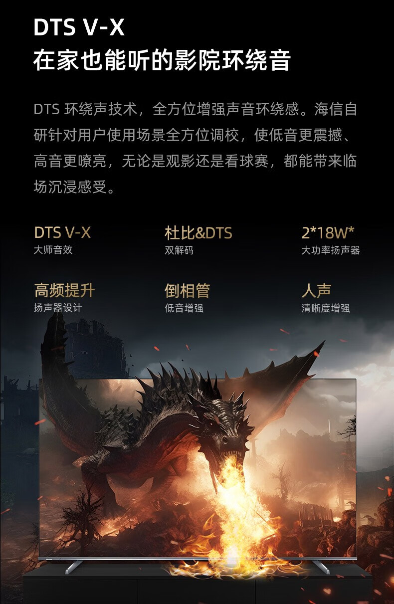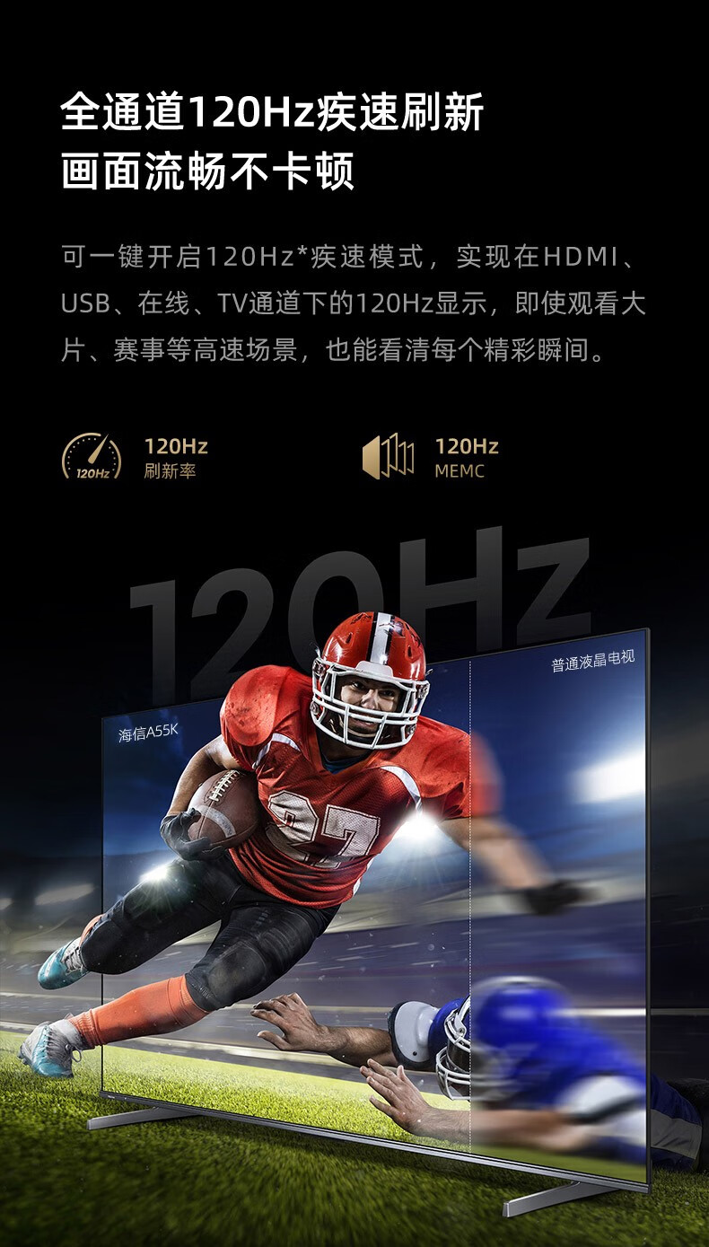 海信电视 A55K系列 4K 120Hz高刷MEMC U+超画质引擎 DTS V-X音效 远场语音 64GB大存储 130%色域