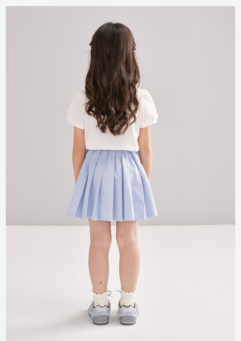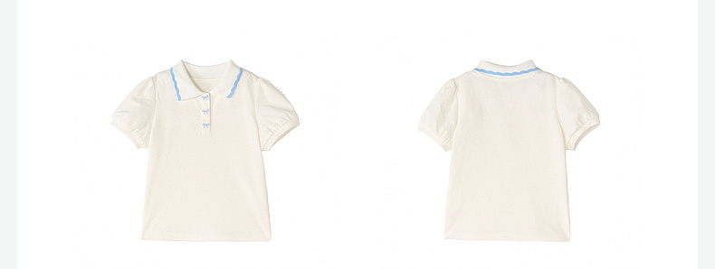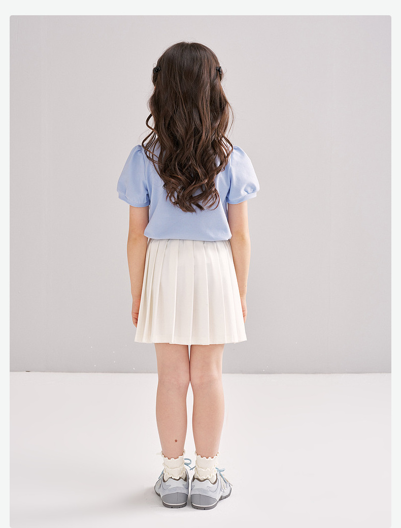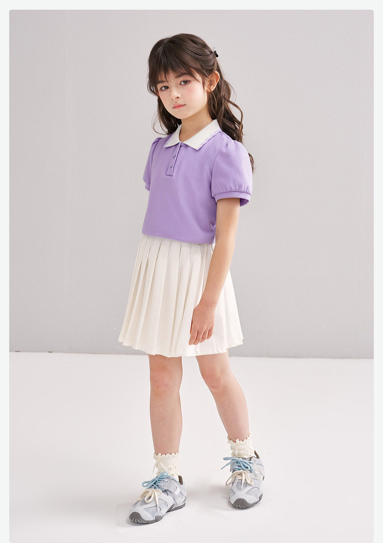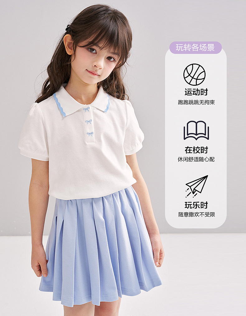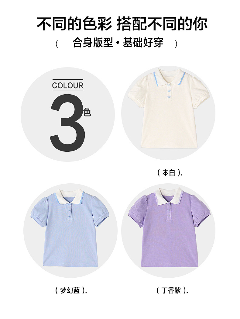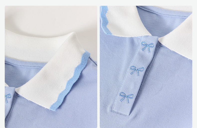 笛莎/Deesha 【松饼熊】2026年夏季新款女童撞色翻领蝴蝶结绣花学院风短袖T恤
