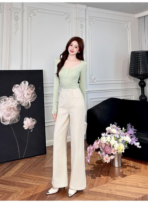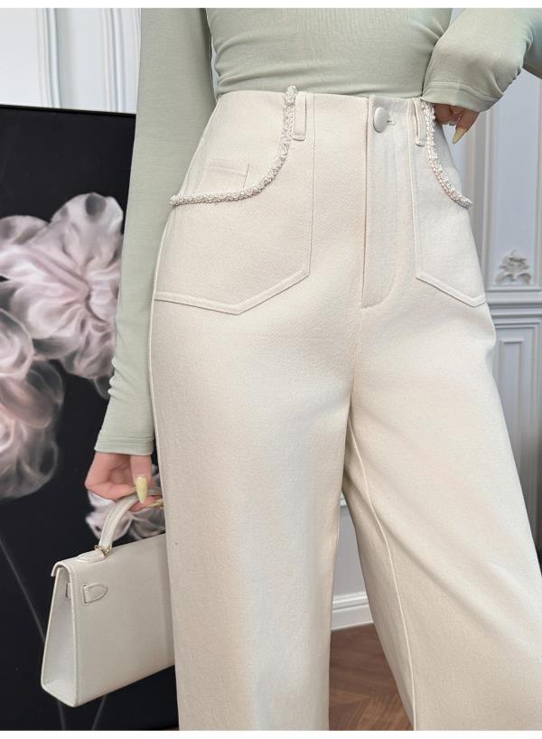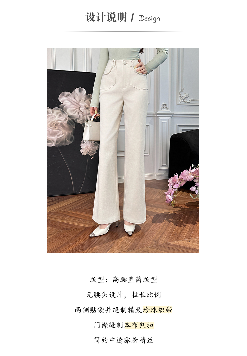 【大货捡漏,不退不换】 【街角漫游】舒适棉感挺阔修身无腰头织带高腰直筒裤