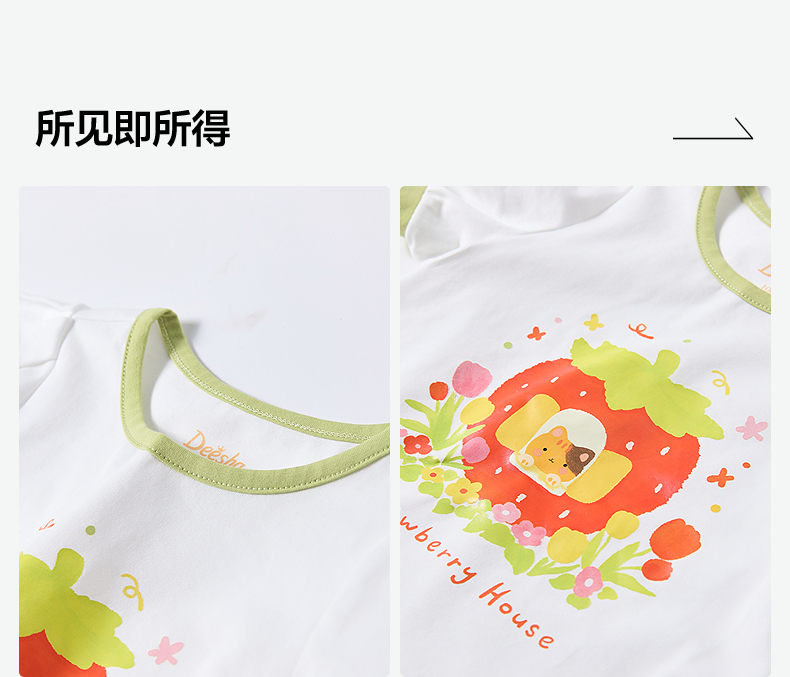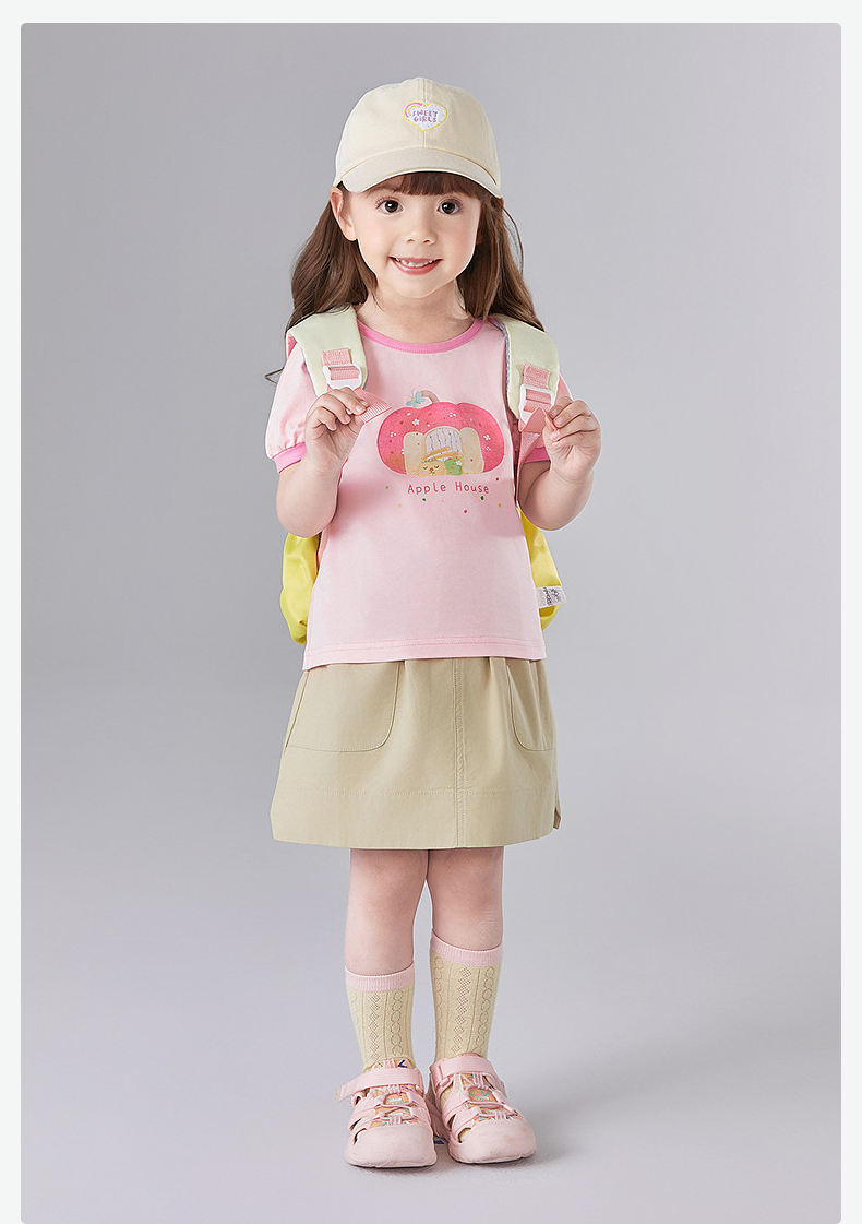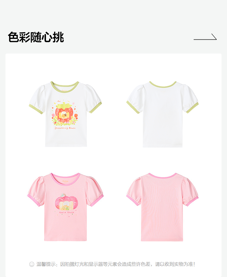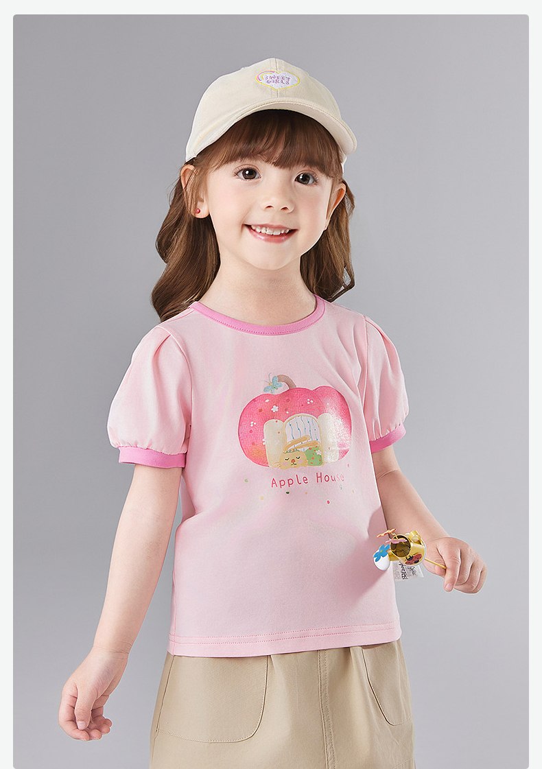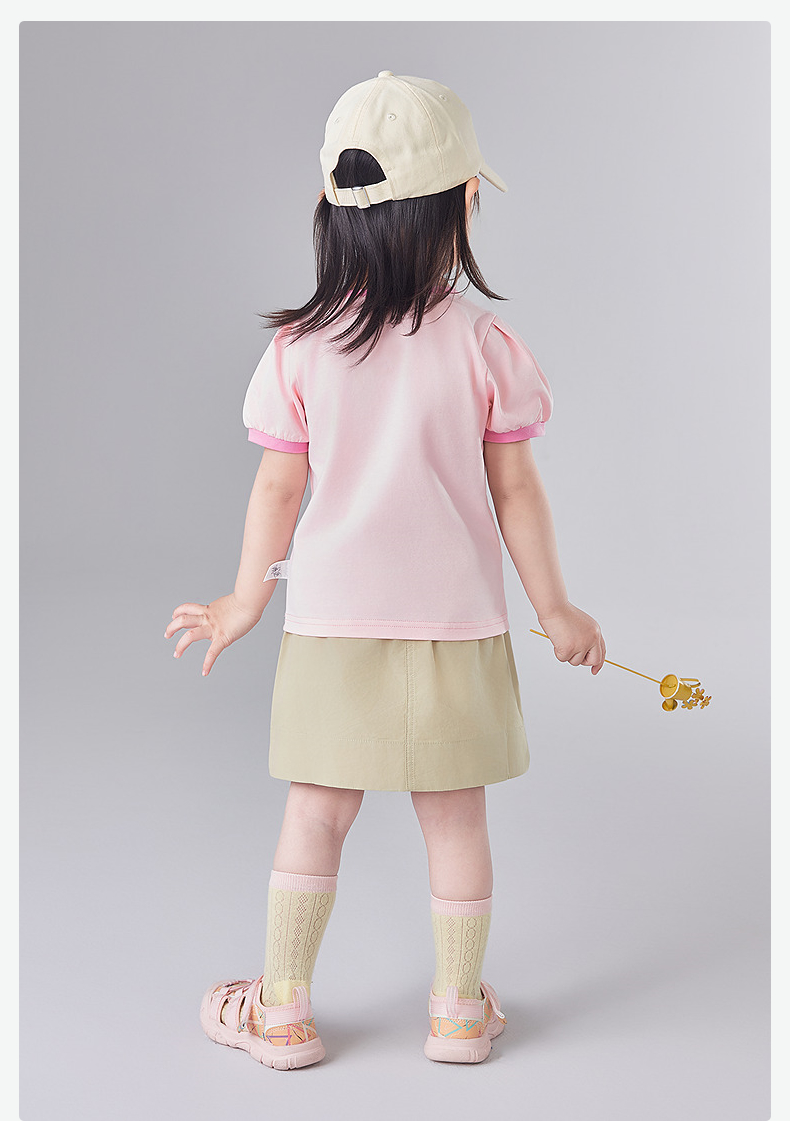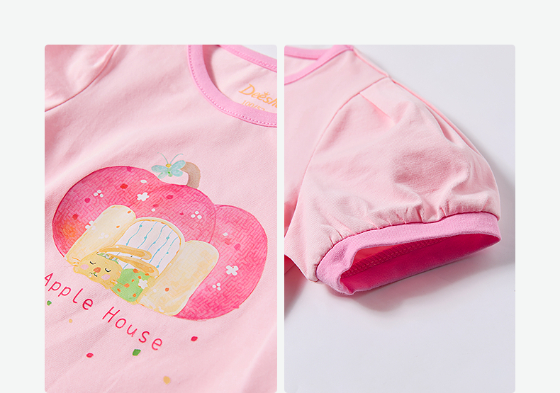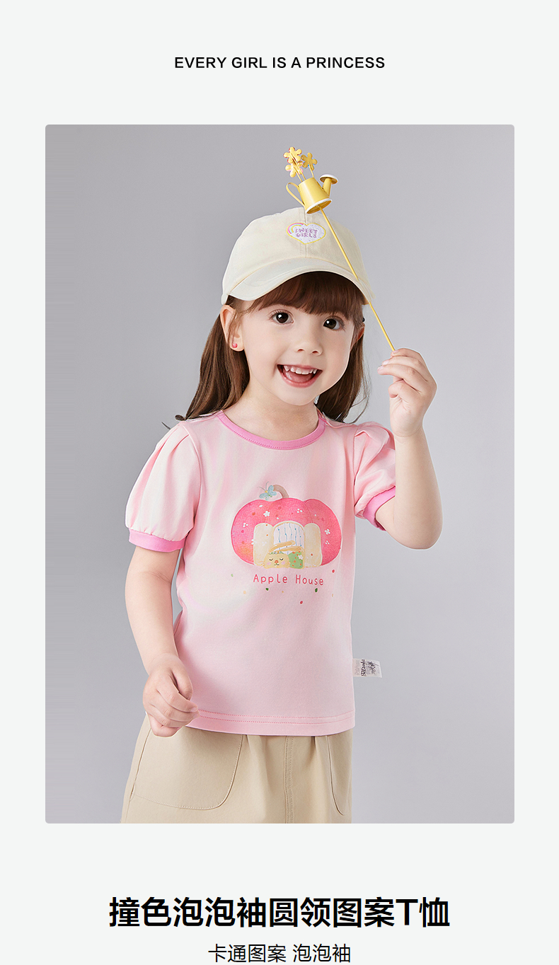 笛莎Deesha 童装女童撞色泡泡袖圆领图案T恤