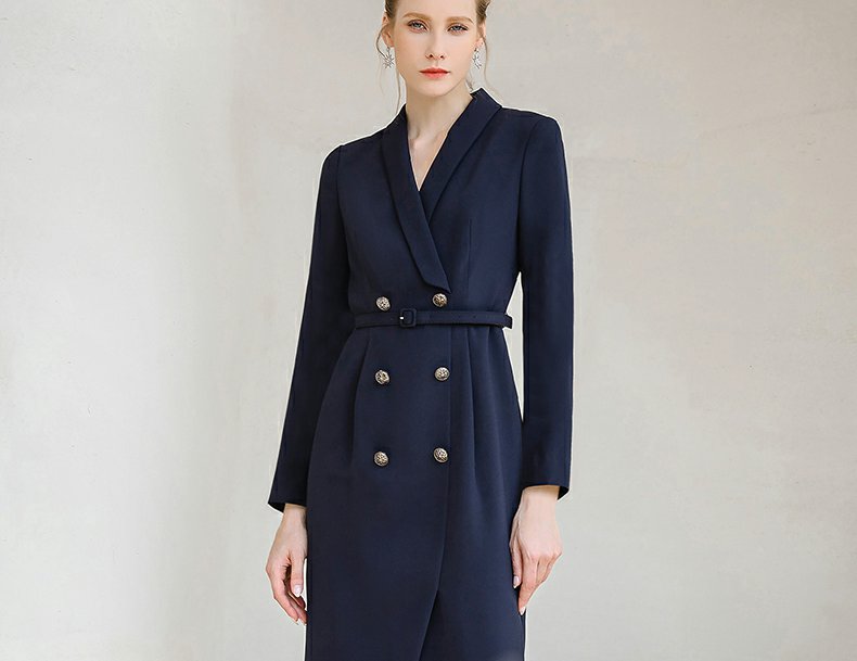 IWY/秋冬新款高端藏青色西装连衣裙女主持人正装工作服西装裙OL 233046Q1