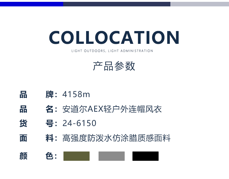 4158m轻户外轻行政 安道尔AEX轻户外连帽风衣