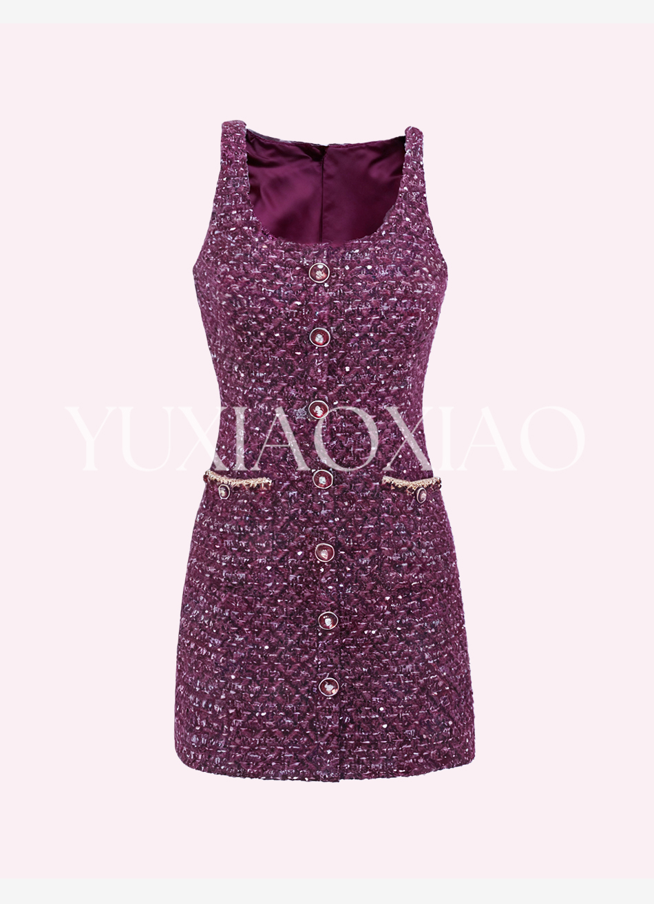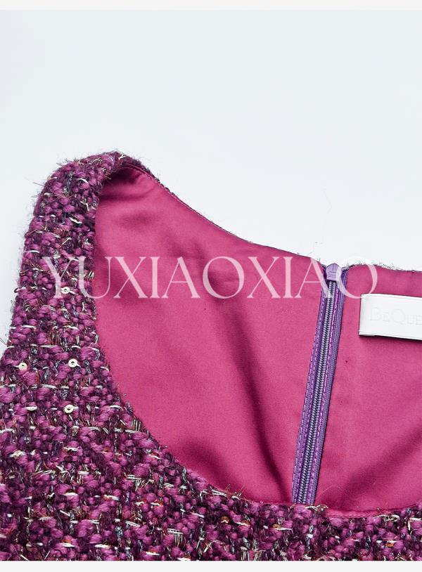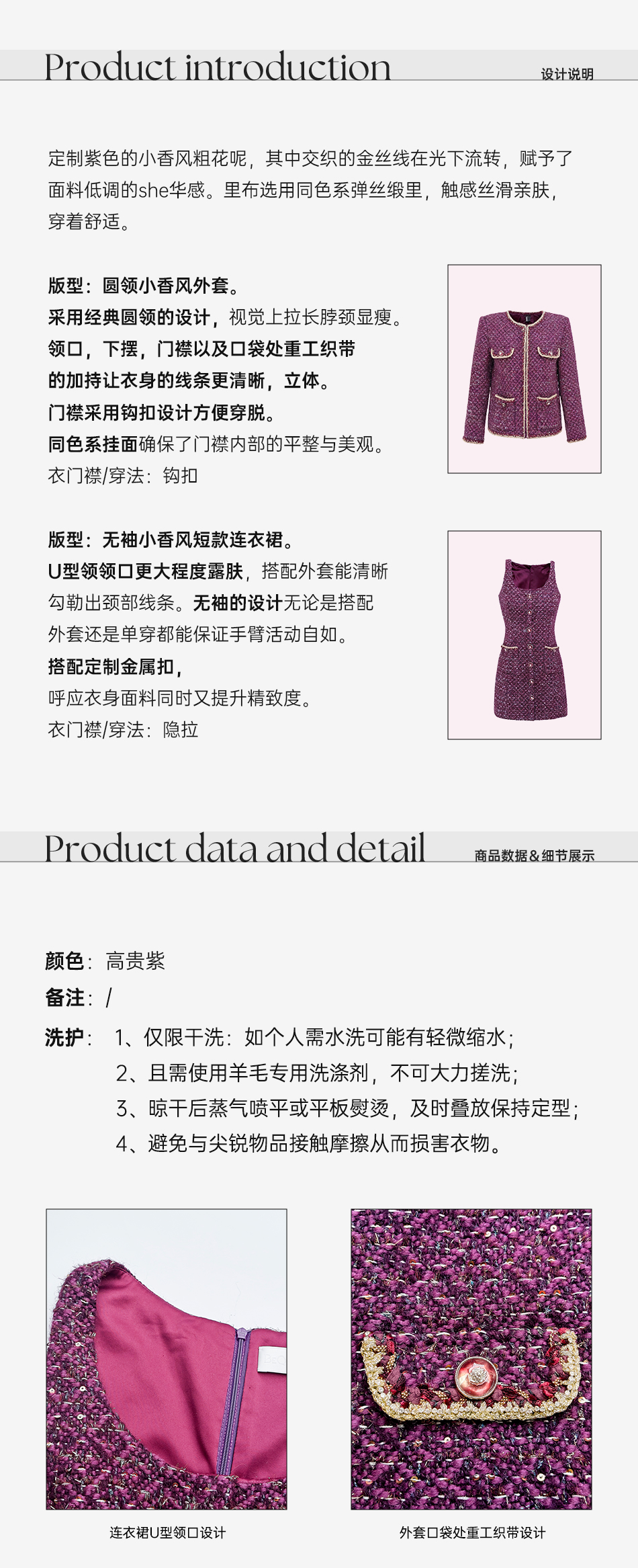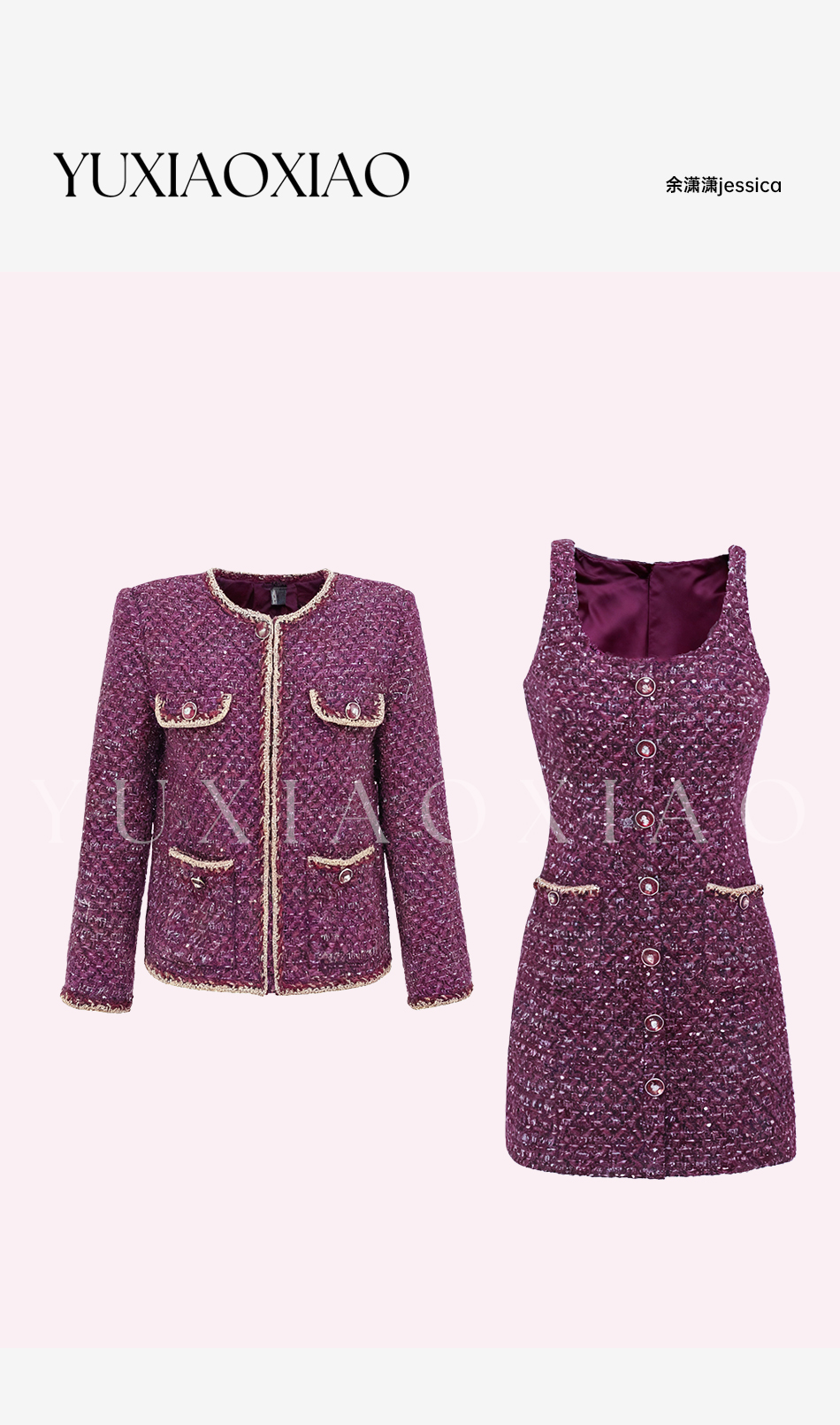 余潇潇【豪门紫晶】时尚羊毛混纺圆领小香风外套&无袖短款连衣裙