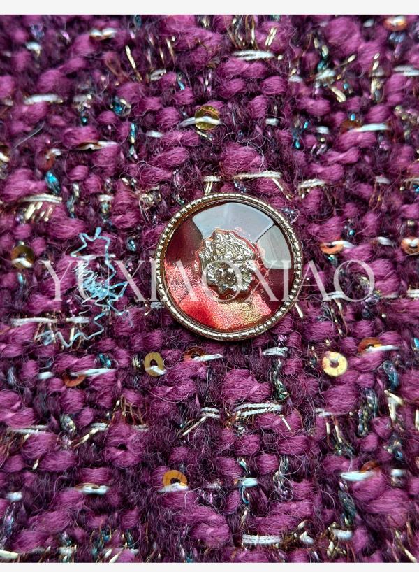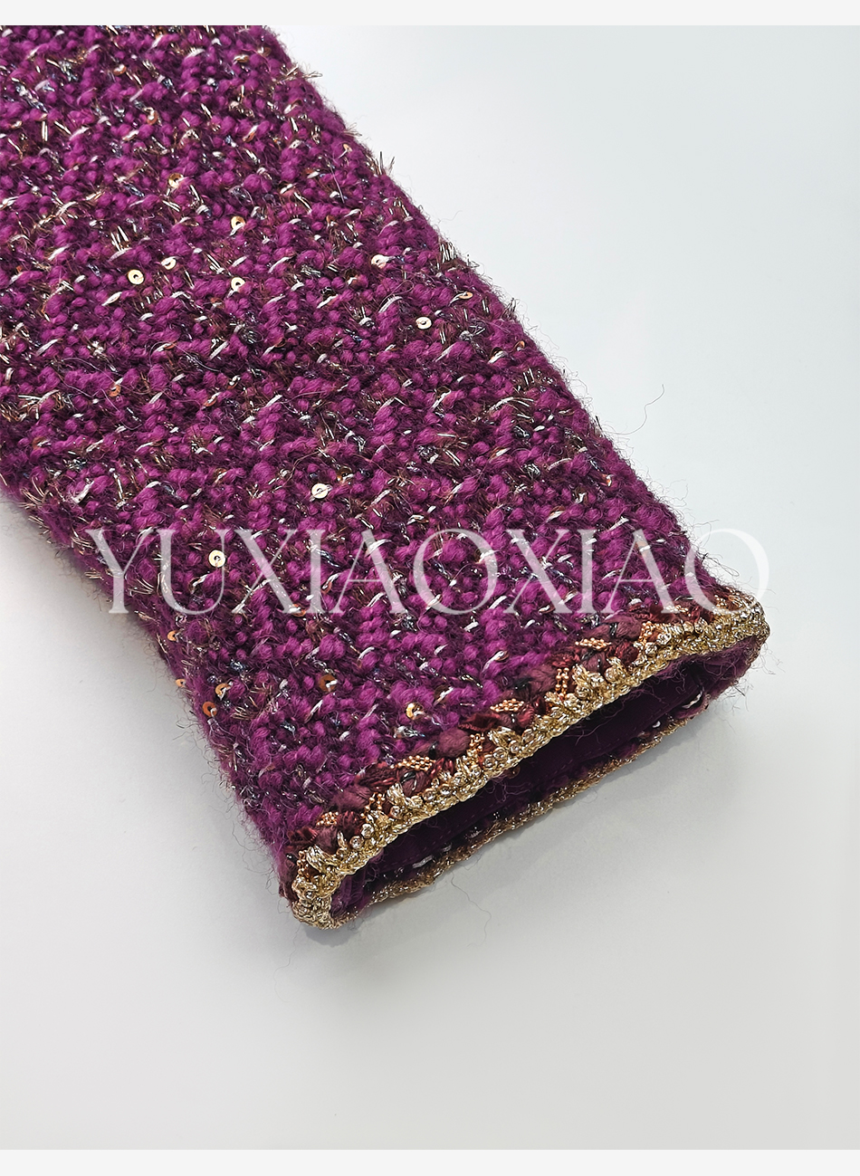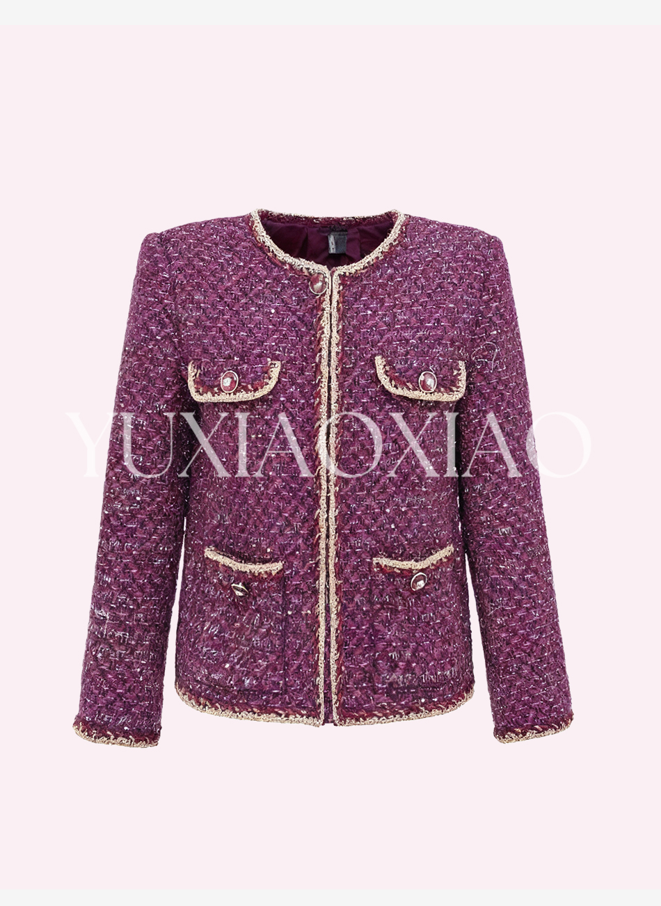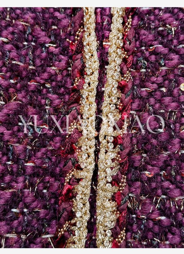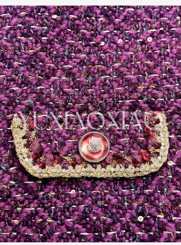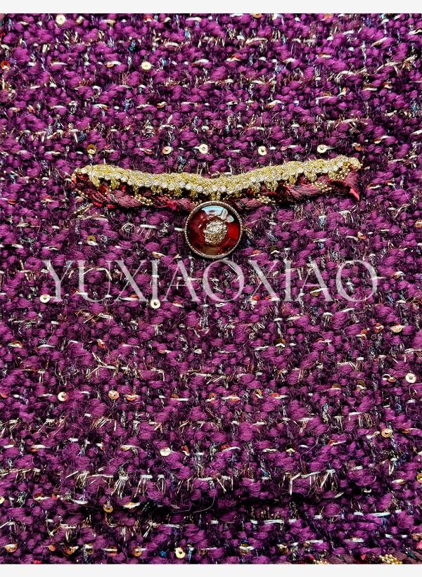 余潇潇【豪门紫晶】时尚羊毛混纺圆领小香风外套&无袖短款连衣裙