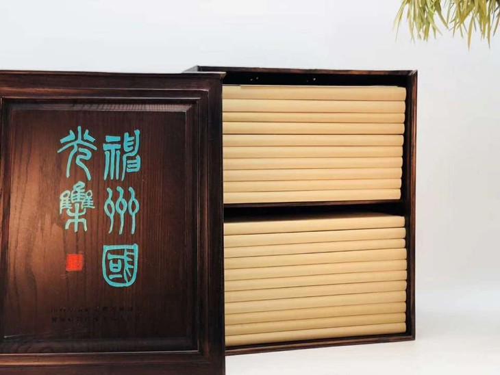 此次推出的版本,并非寻常所见的平装函套版,而是布面精装,榆木书箱编号限量珍藏版,书箱盖板上的“神州国光集”五字为吴昌硕先生手迹雕刻,大方典雅。我们群里虽然多是藏书人,但恐怕很少会有这样的木书箱吧。