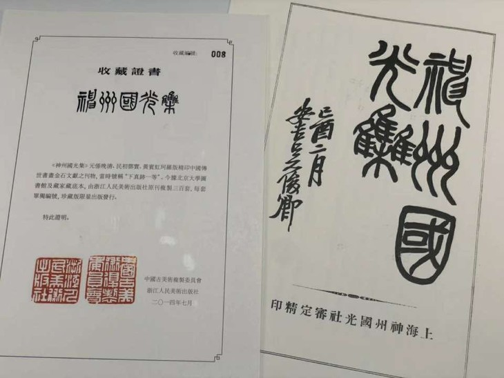 作为中国第一个专门出版金石书画图像的期刊,《神州国光集》借用当时世界最先进的照相复制技术保存中国美术,是现在了解众多书画碑帖流传情况的极佳渠道。所用珂罗版技术“下真迹一等”,是民国时期最高端之金石书画期刊。但此书民国版颇不易得,市价极高。2014年,浙江人民美术出版社借得藏书家孟宪钧先生藏本(第19册借用北京大学图书馆藏本),重新出版,嘉惠士林。此书原刊原大原色复制,单册呈现,用纸与印刷精良,完美复原一百年前最先进的珂罗版效果。