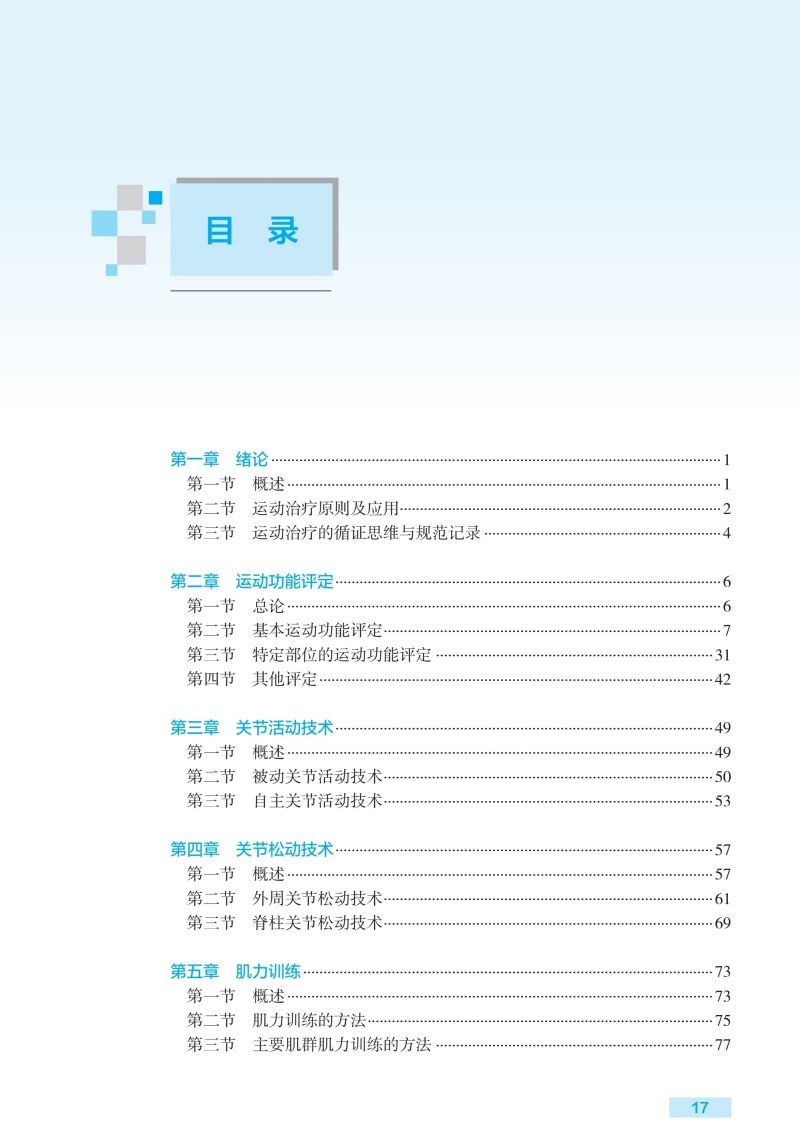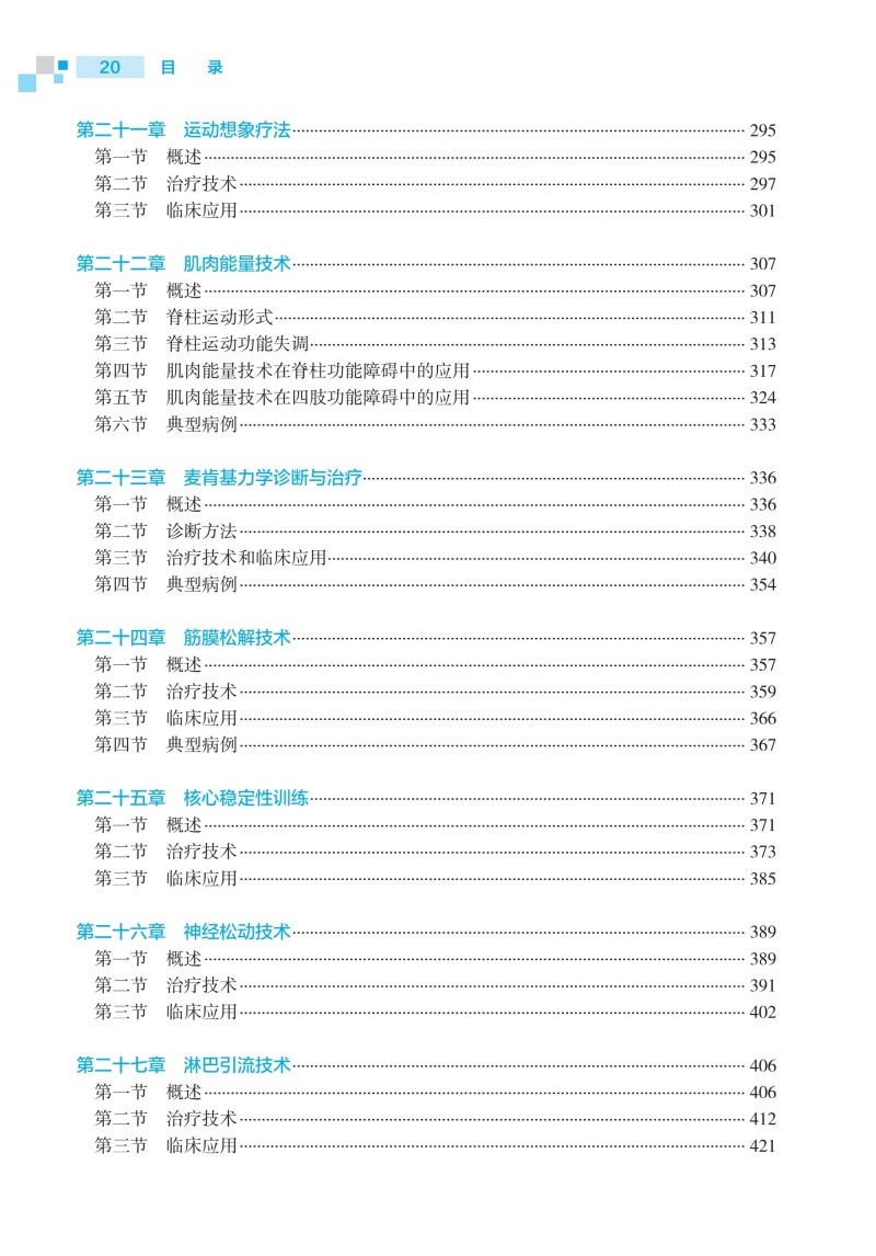 第一章绪论/1 第一节概述/1 第二节运动治疗原则及应用/2 第三节运动治疗的循证思维与规范记录/4 第二章运动功能评定/6 第一节总论/6 第二节基本运动功能评定/7 第三节特定部位的运动功能评定/31 第四节其他评定/42 第三章关节活动技术/49 第一节概述/49 第二节被动关节活动技术/50 第三节自主关节活动技术/53 第四章关节松动技术/57 第一节概述/57 第二节外周关节松动技术/61 第三节脊柱关节松动技术/69 第五章肌力训练/73 第一节概述/73 第二节肌力训练的方法/75 第三节主要肌群肌力训练的方法/77 第六章牵引技术/88 第一节概述/88 第二节颈椎牵引技术/89 第三节腰椎牵引技术/92 第四节关节功能牵引/94 第七章牵伸技术/98 第一节概述/98 第二节徒手牵伸技术/100 第三节典型病例/106 第八章平衡与协调训练/108 第一节概述/108 第二节平衡训练方法/111 第三节协调训练方法/114 第九章有氧运动训练/118 第一节概述/118 第二节有氧运动训练的应用/123 第十章心脏功能训练/127 第一节运动对心血管系统的影响/127 第二节常见导致心脏功能减退的因素/130 第三节心脏功能评定/130 第四节心脏功能训练的基本方法/135 第十一章呼吸训练/140 第一节概述/140 第二节呼吸系统检查和功能评估/141 第三节呼吸治疗/144 第十二章医疗体操/154 第一节概述/154 第二节医疗体操常用训练方法/154 第三节临床应用/172 第十三章步行与移动能力训练/174 第一节概述/174 第二节卧位与坐位功能训练/175 第三节轮椅使用与移乘/178 第四节拐杖和助行器的使用/183 第五节步态矫正和步行训练/185 第十四章Bobath概念/189 第一节概述/189 第二节治疗原理/190 第三节评价与临床推理/194 第四节治疗方法/195 第五节临床应用/204 第十五章Brunnstrom技术/213 第一节概述/213 第二节偏瘫患者常用治疗技术/218 第三节临床应用/224 第十六章本体促进技术/227 第一节概述/227 第二节治疗技术/229 第三节临床应用/243 第十七章运动再学习技术/246 第一节概述/246 第二节运动再学习训练指南/249 第三节临床应用/260 第十八章强制性运动疗法/264 第一节概述/264 第二节治疗技术/265 第三节其他临床应用/269 第十九章镜像疗法/273 第一节概述/273 第二节治疗技术/275 第三节临床应用/276 第二十章虚拟现实技术/285 第一节概述/285 第二节治疗技术/287 第三节临床应用/288 第二十一章运动想象疗法/295 第一节概述/295 第二节治疗技术/297 第三节临床应用/301 第二十二章肌肉能量技术/307 第一节概述/307 第二节脊柱运动形式/311 第三节脊柱运动功能失调/313 第四节肌肉能量技术在脊柱功能障碍中的应用/317 第五节肌肉能量技术在四肢功能障碍中的应用/324 第六节典型病例/333 第二十三章麦肯基力学诊断与治疗/336 第一节概述/336 第二节诊断方法/338 第三节治疗技术和临床应用/340 第四节典型病例/354 第二十四章筋膜松解技术/357 第一节概述/357 第二节治疗技术/359 第三节临床应用/366 第四节典型病例/367 第二十五章核心稳定性训练/371 第一节概述/371 第二节治疗技术/373 第三节临床应用/385 第二十六章神经松动技术/389 第一节概述/389 第二节治疗技术/391 第三节临床应用/402 第二十七章淋巴引流技术/406 第一节概述/406 第二节治疗技术/412 第三节临床应用/421 第二十八章盆底肌肉训练/428 第一节概述/428 第二节治疗技术/434 第三节临床应用/445