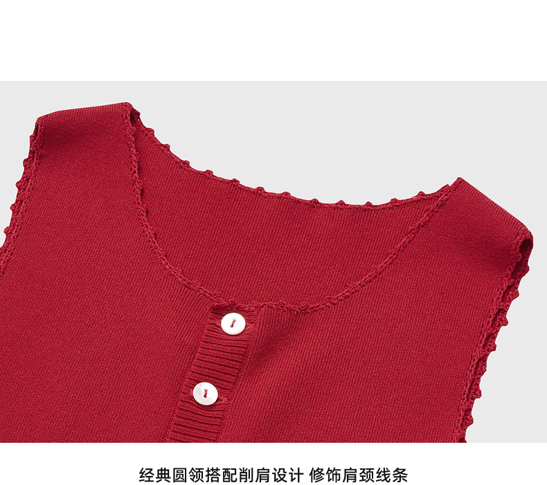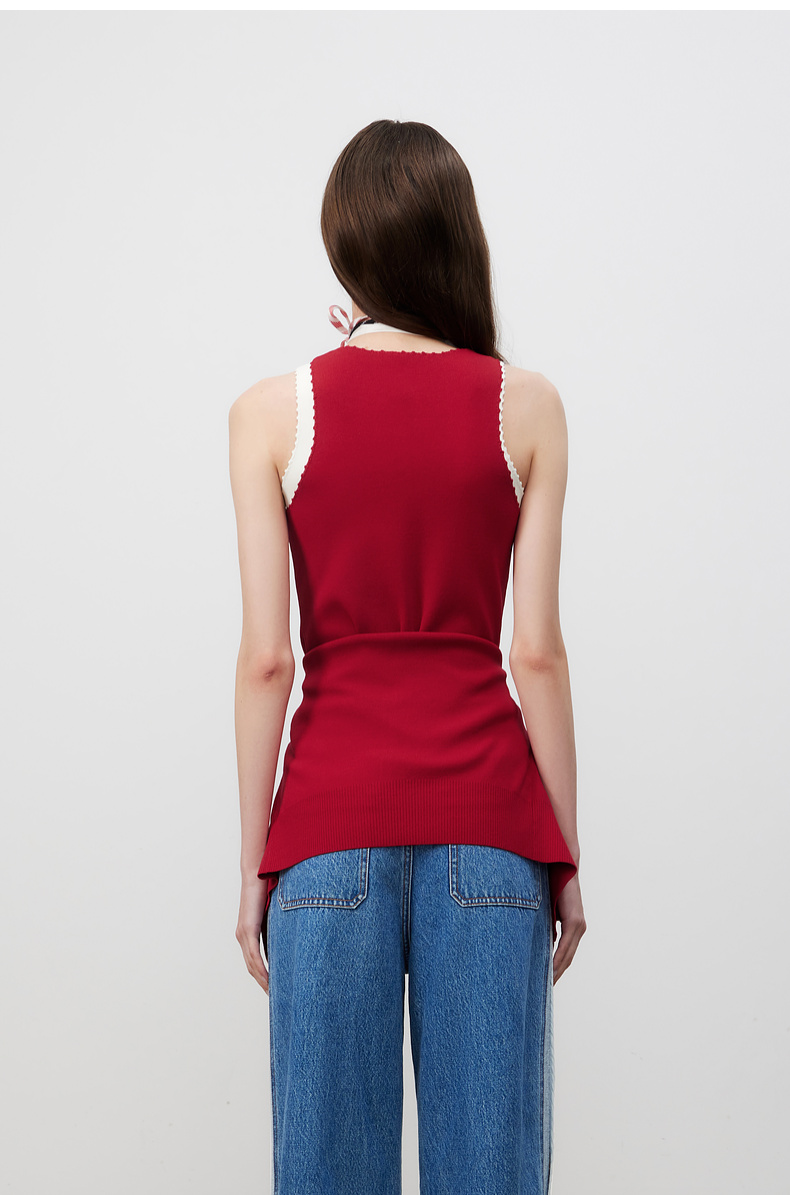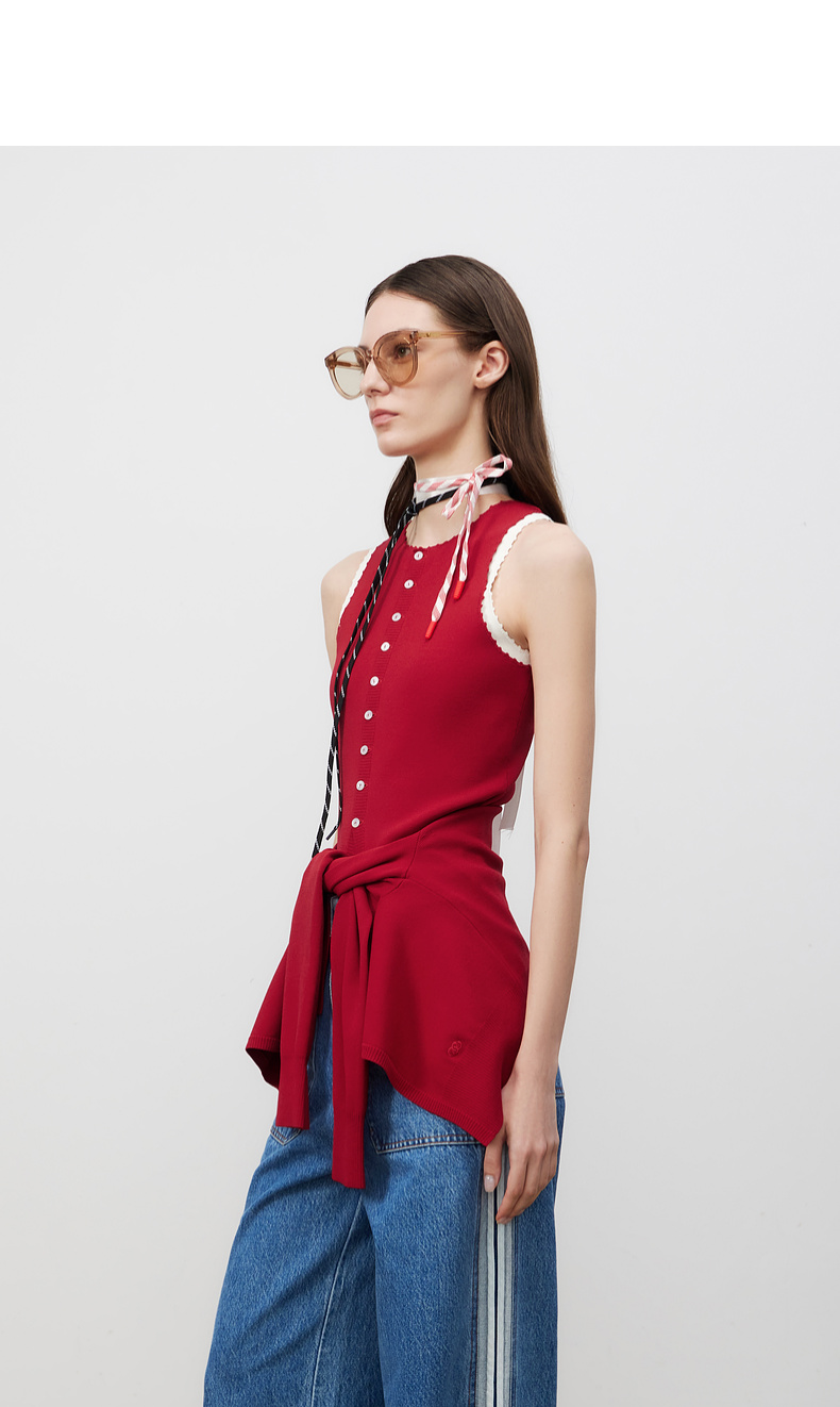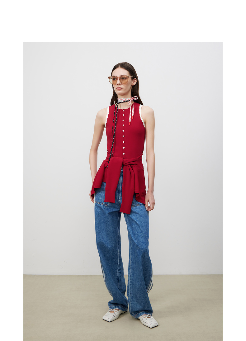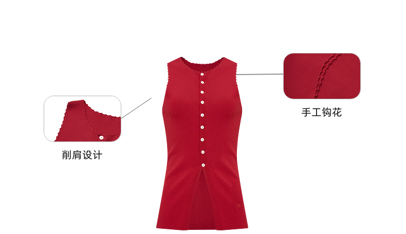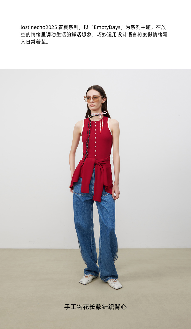 lost in echo2025春夏新款红色手工钩花长款内搭打底针织背心女
