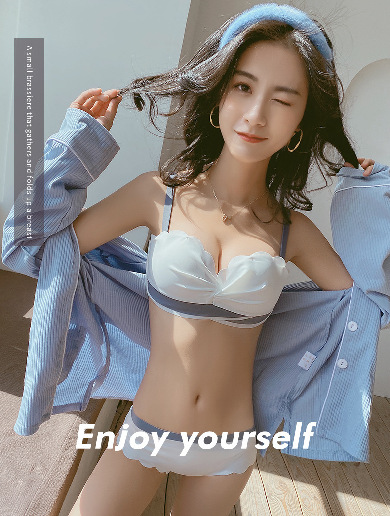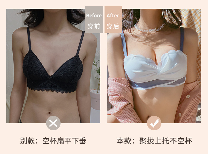 黛唯梵内衣少女士小胸衣显大聚拢无钢圈薄款收副乳防下垂夏季文胸罩套装
