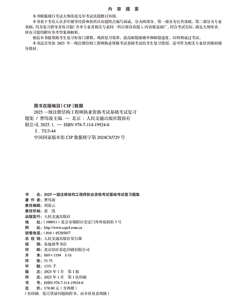 书名:2025一级注册结构工程师执业资格考试基础考试复习题集