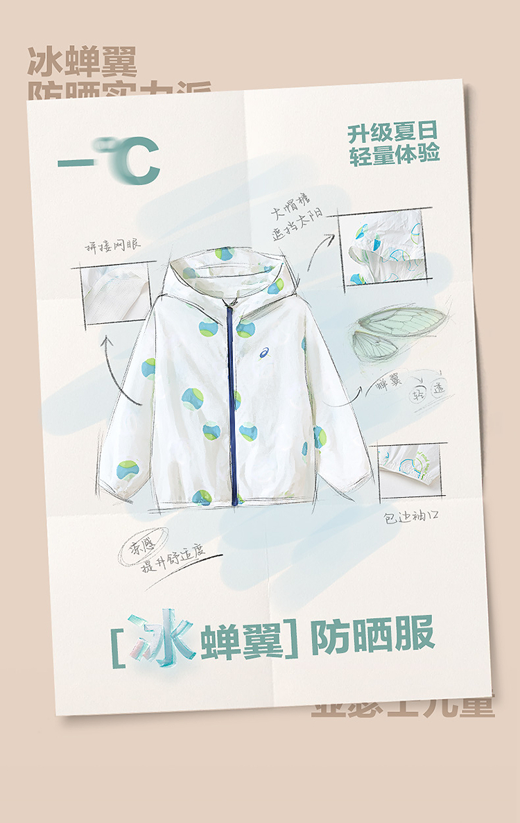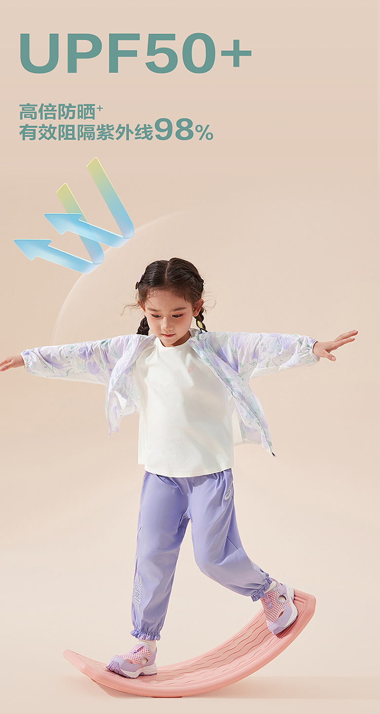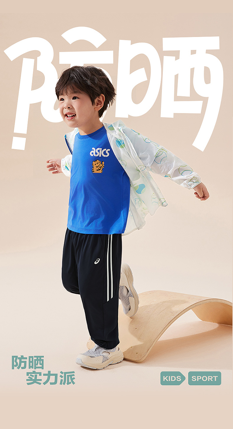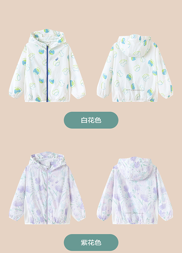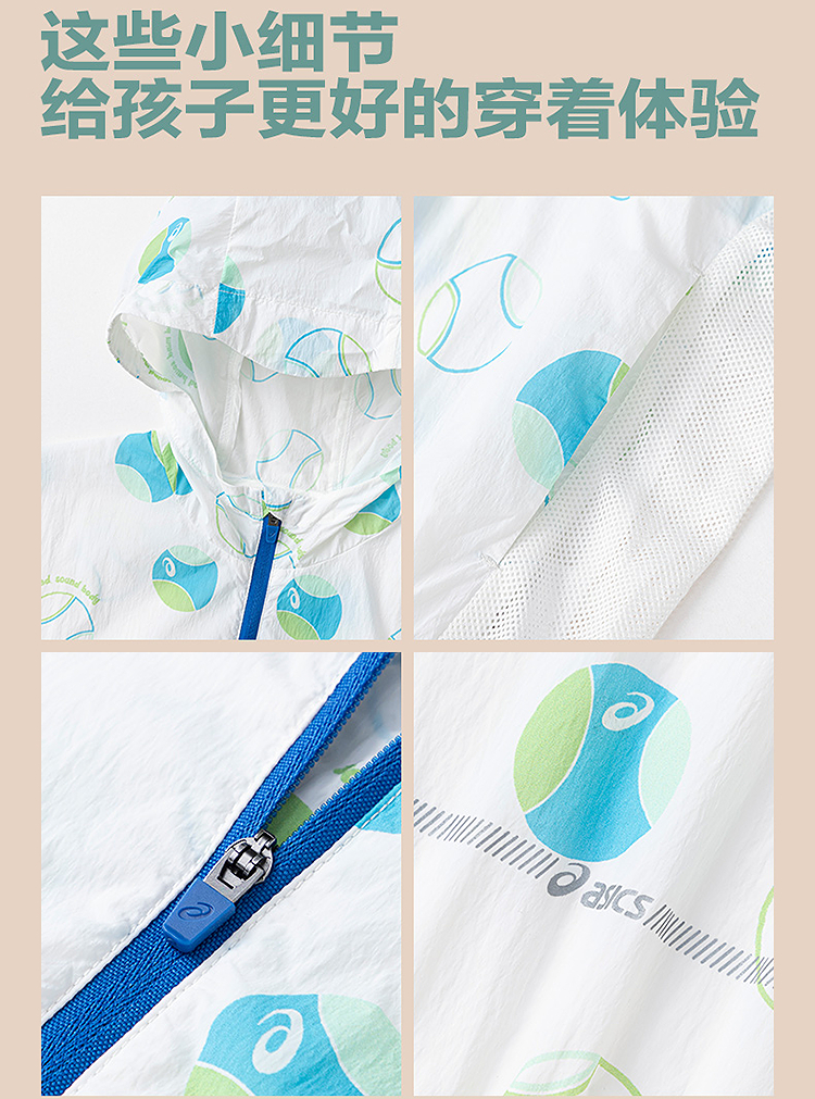 ASICS/亚瑟士童装25年夏季新款小童UPF50+防晒服印花轻薄透气外套