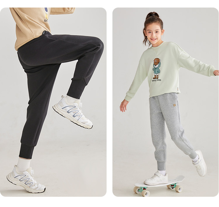 水孩儿童装2023秋季新款男童裤子弹力针织休闲舒适运动裤女童长裤
