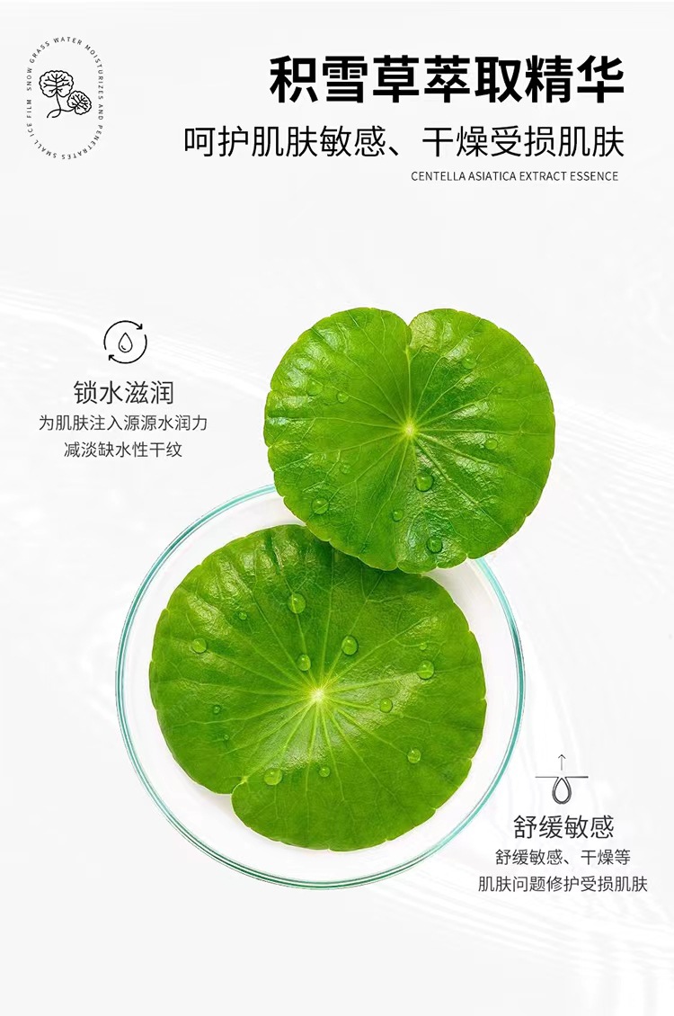 【会呼吸的冰膜】积雪草水润小冰膜面膜晒后修护保湿补水,为肌肤注入源源水润力,减淡缺水性干纹。ry
