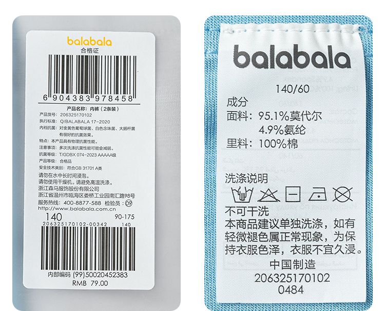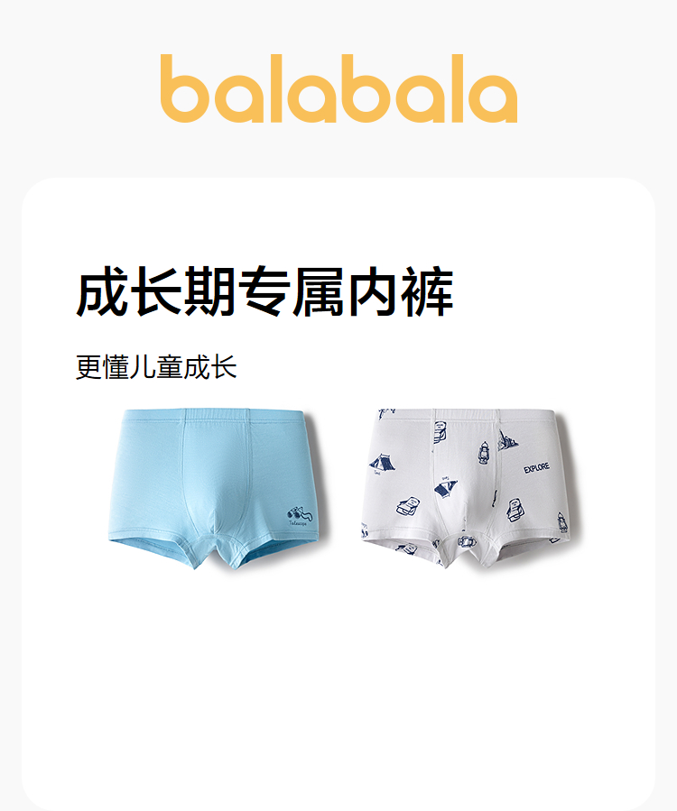 巴拉巴拉男童内裤棉平角四角短裤抗菌裆不夹P两条装
