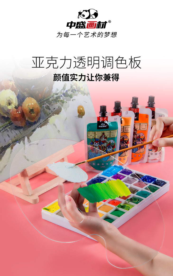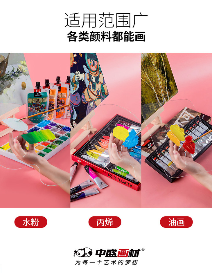 中盛画材 亚克力塑料透明椭圆方形调色板水彩水粉丙烯颜料调色板