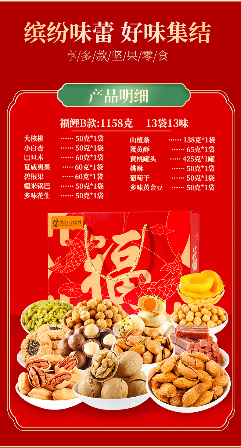【尽享寓意好礼❗️福鲤大礼包】美味甄选,坚果零食礼盒,佳节有礼团圆有味,国潮艺术大气有颜值,春节送长辈,年货佳节好礼L